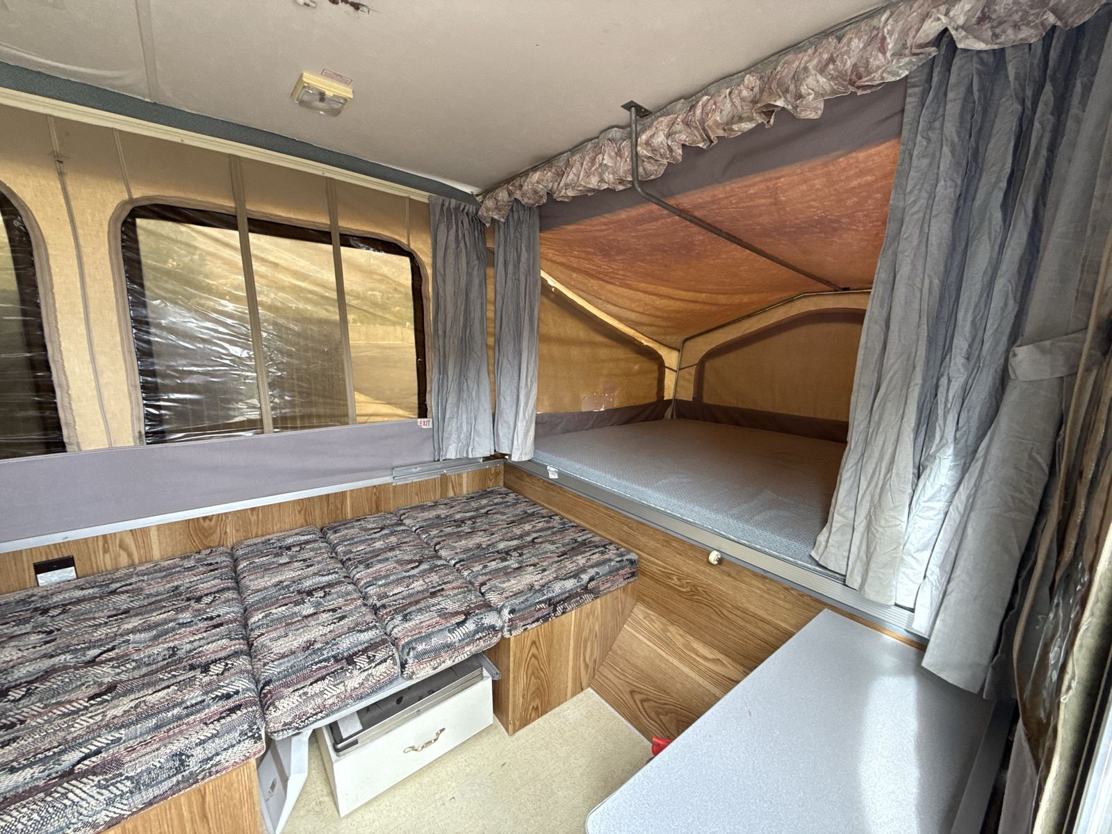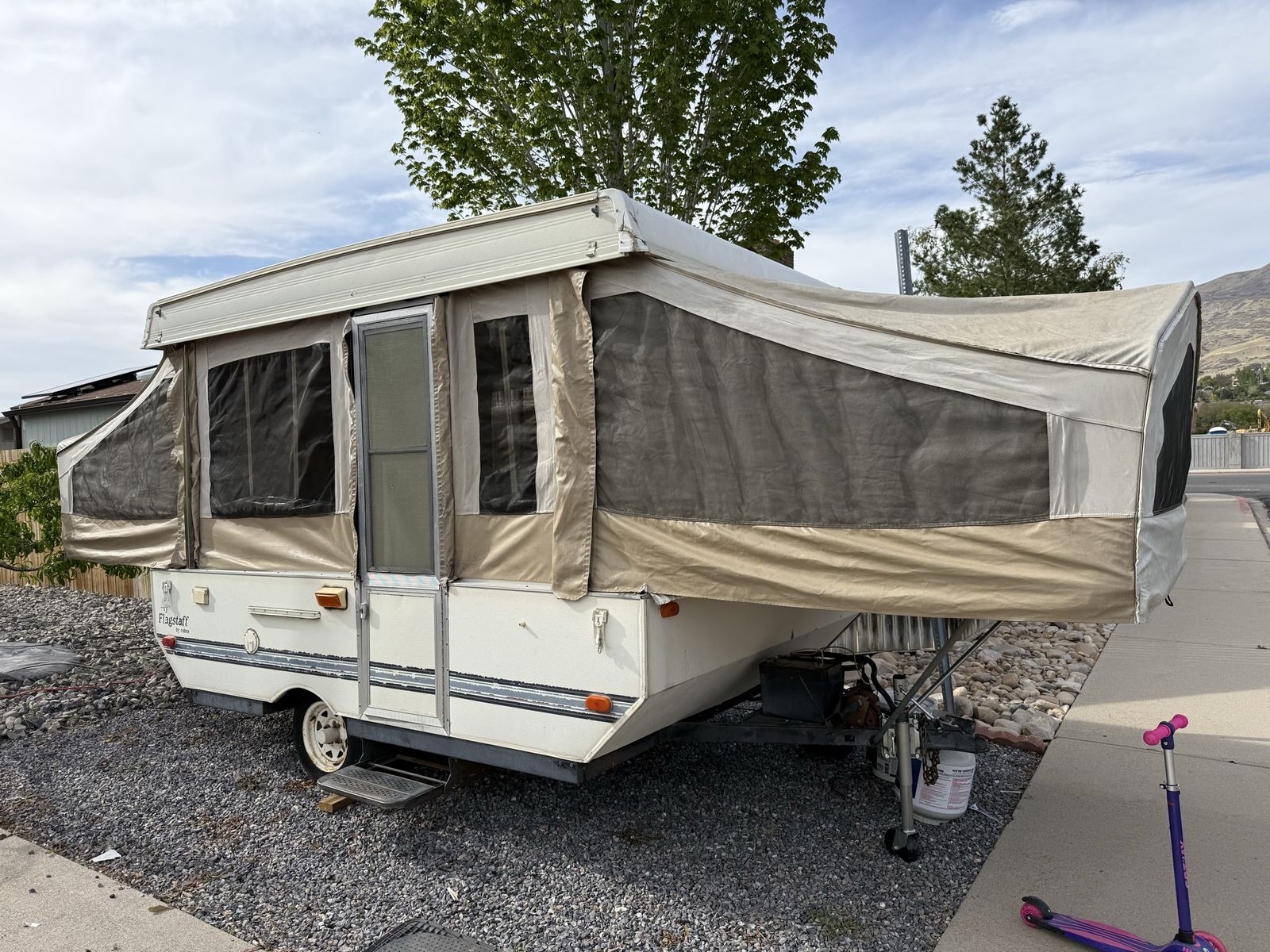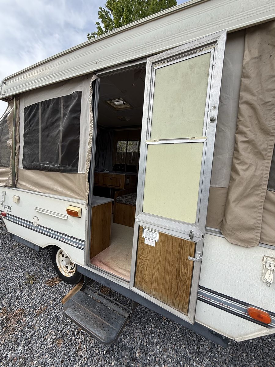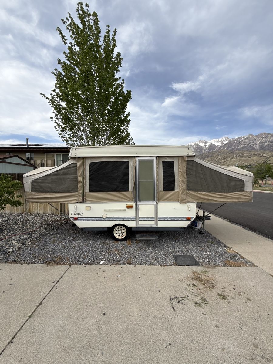 Lightweight, clean, and ready for camping—this 1995 Flagstaff pop-up is an easy way to get outdoors without breaking the bank.