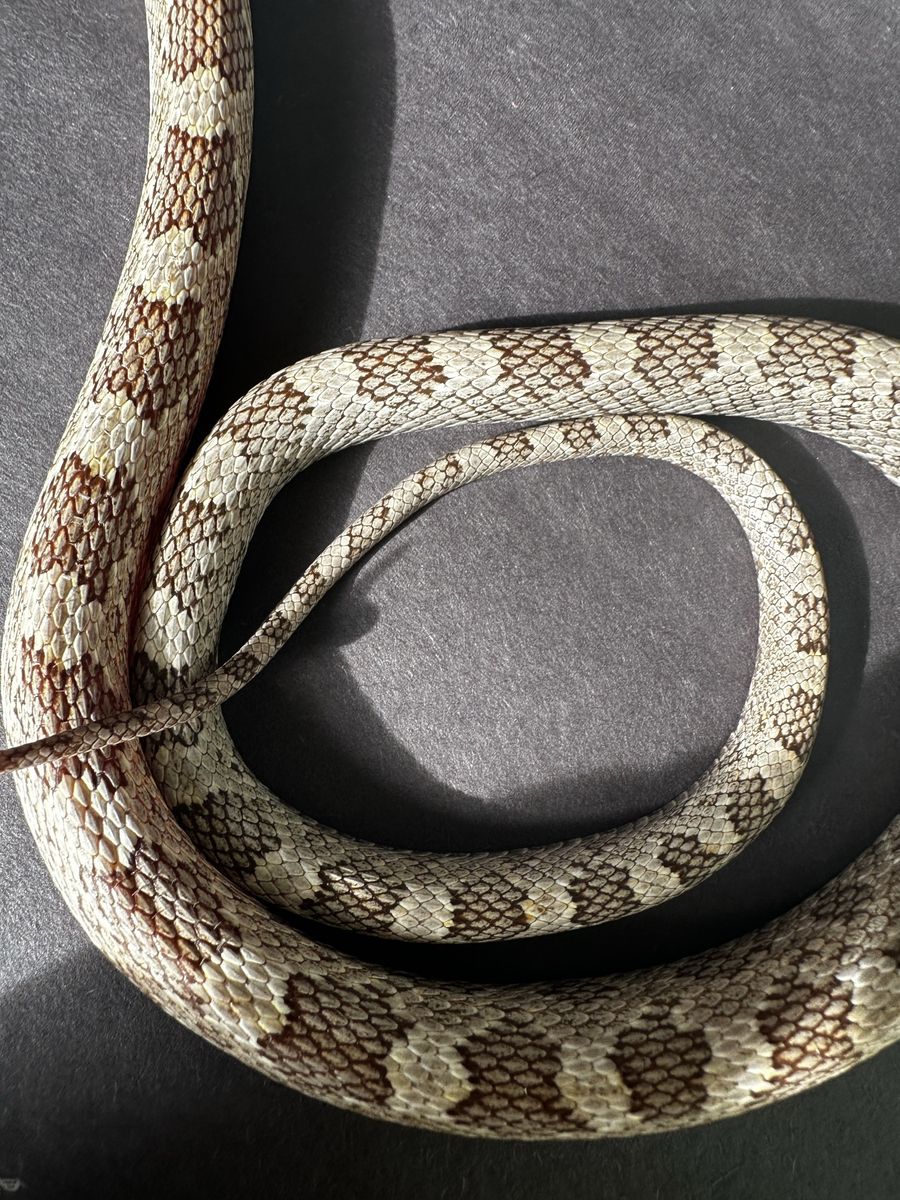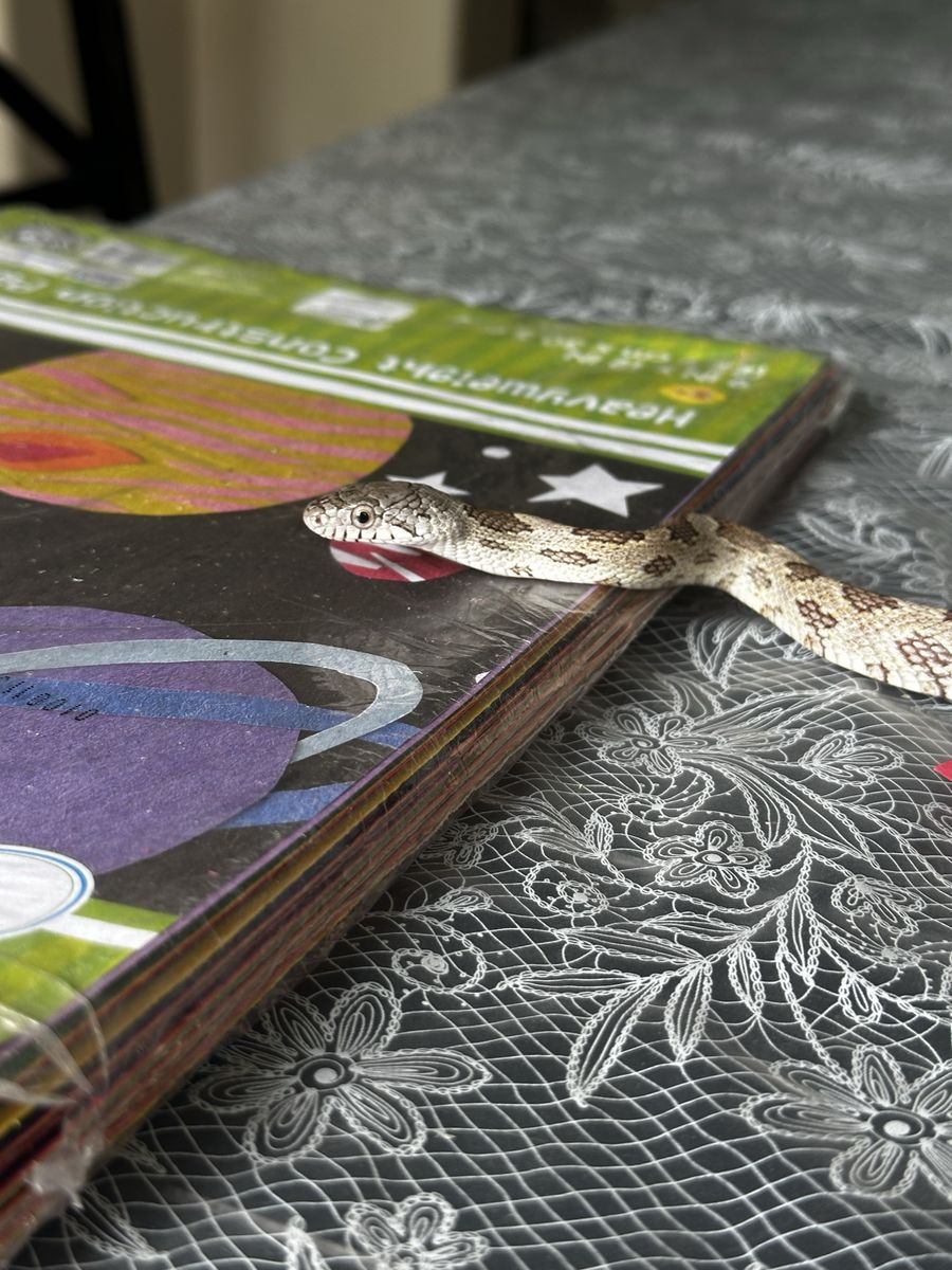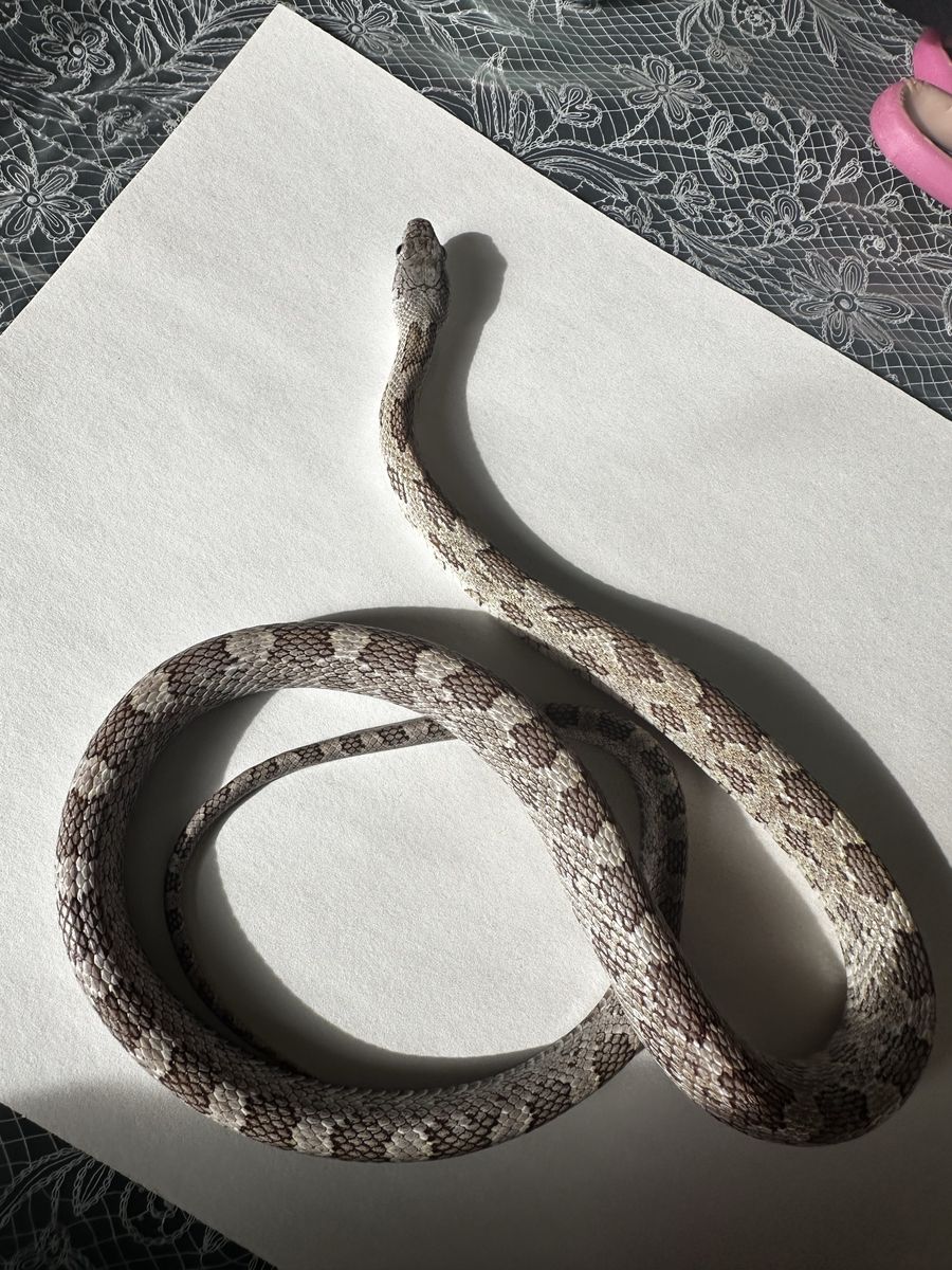 Meet Barley, he is a 6 year old normal morph eastern rat snake that I got from a reptile expo years ago. He is a very curious and adventurous guy. If you have any gap in your enclosure he will find a way to get out. If you’re doing things around his enclosure he sometimes comes out to watch you. He is a bit flighty when you first pick him up but he calms down after being out for a bit. He can also be a bit jumpy if he has been sitting in one place for a bit (like your hand) then you touch him or go to grab him he goes back to being flighty. That can be solved with more handling. Over all he is a very easy keeper. He almost never refuses food. He is not picky.