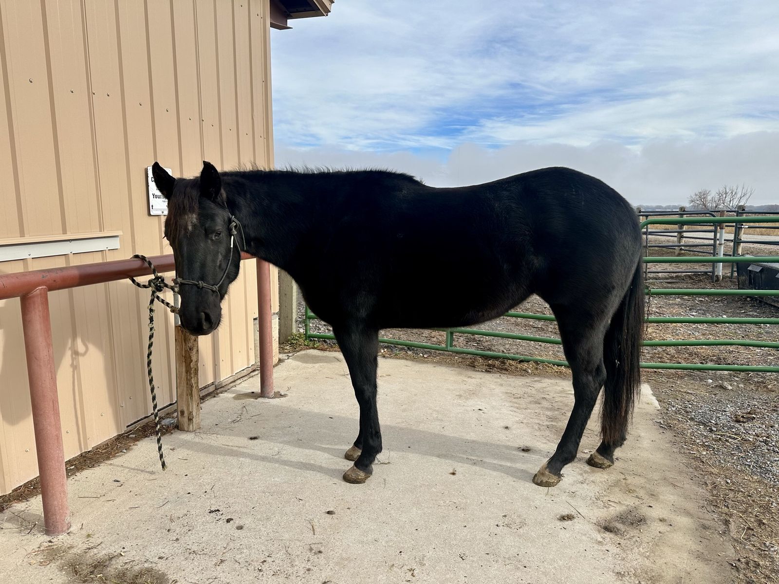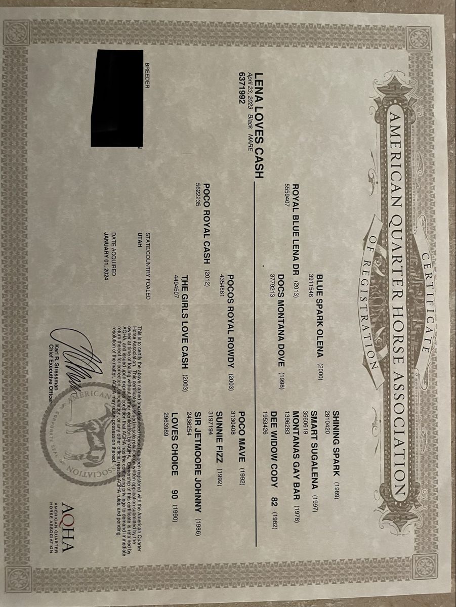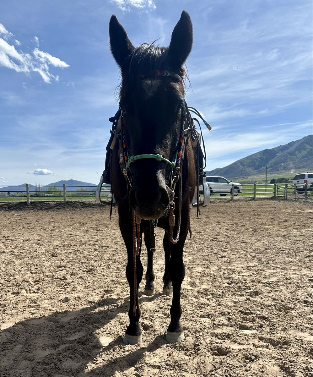 Registered AQHA 3-year-old black mare (Lena Loves Cash) with a great start and an even better mind. Walk trot lope both ways. Has had lots of ground work, lunges, gives to pressure, and wants to please. She’s been started right and is ready to go on in any direction. Professionally started and maintained. 15.1 hands but will mature 15.2-15.3 hands. Easy to have around—ties, loads, and trailers well. Good in both a stall and pasture, and sits in the middle of the pecking order. Great for the farrier, currently barefoot but has had shoes and does well either way. Very gentle, willing, and easygoing—she has the kind of temperament that will make a great kid’s horse with more miles. She has lots of trail miles, not much phases her. UTD on vaccines, deworming, just got a trim, and had her teeth floated. She’s ready to go! By Poco Royal Cash and out of Royal Blue Lena DR, giving her a solid mix of cow and foundation breeding.