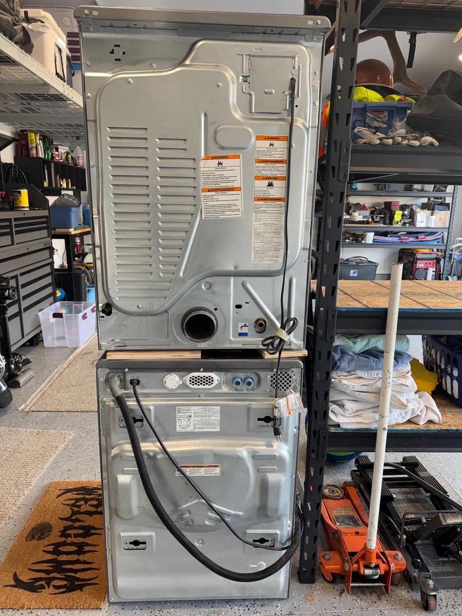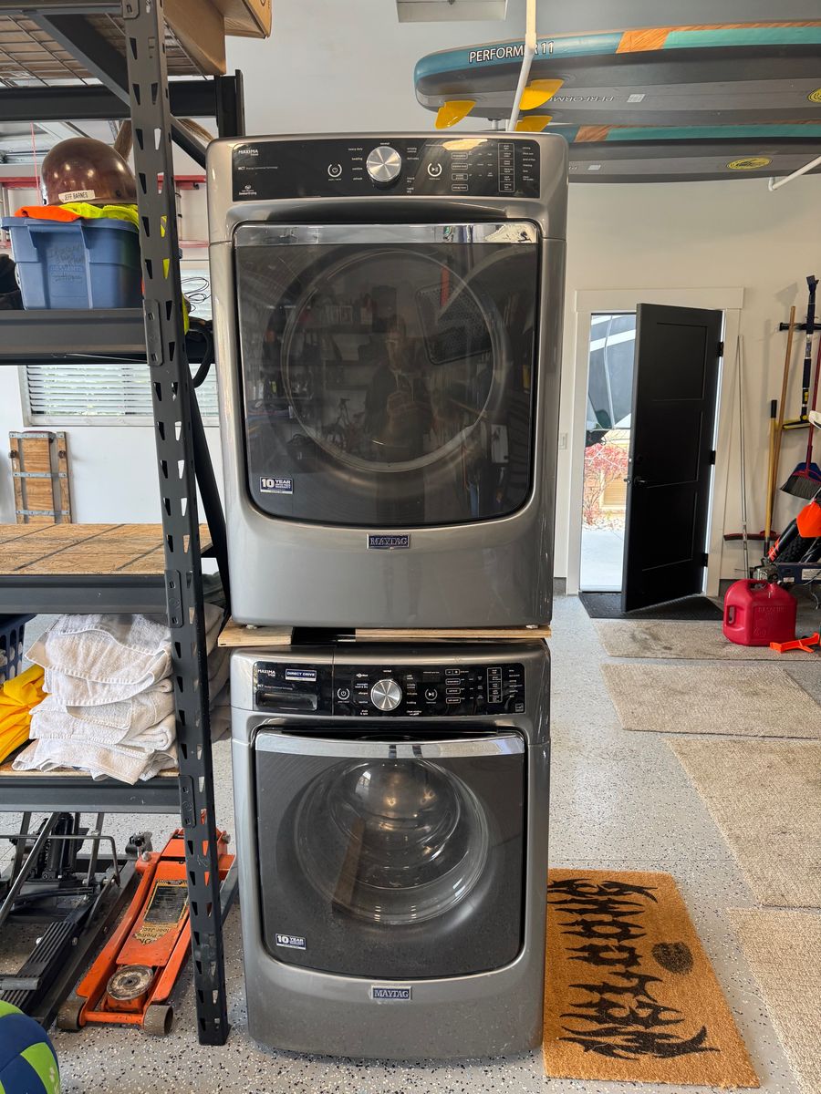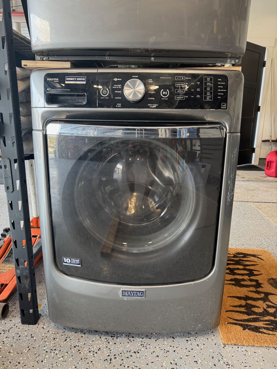Maytag Washer and Gas Dryer 8 years old. Maxi steam. Just upgraded, both work great before we replaced them. These are not stackable, I just stacked them for space in my garage