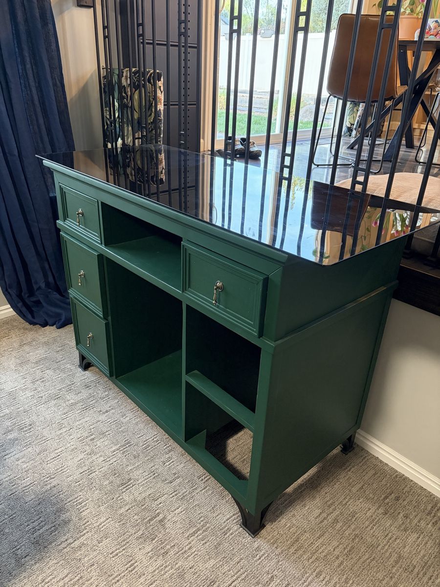 A dresser that was painted and turned into a drink station. Glass top comes off. Free!!