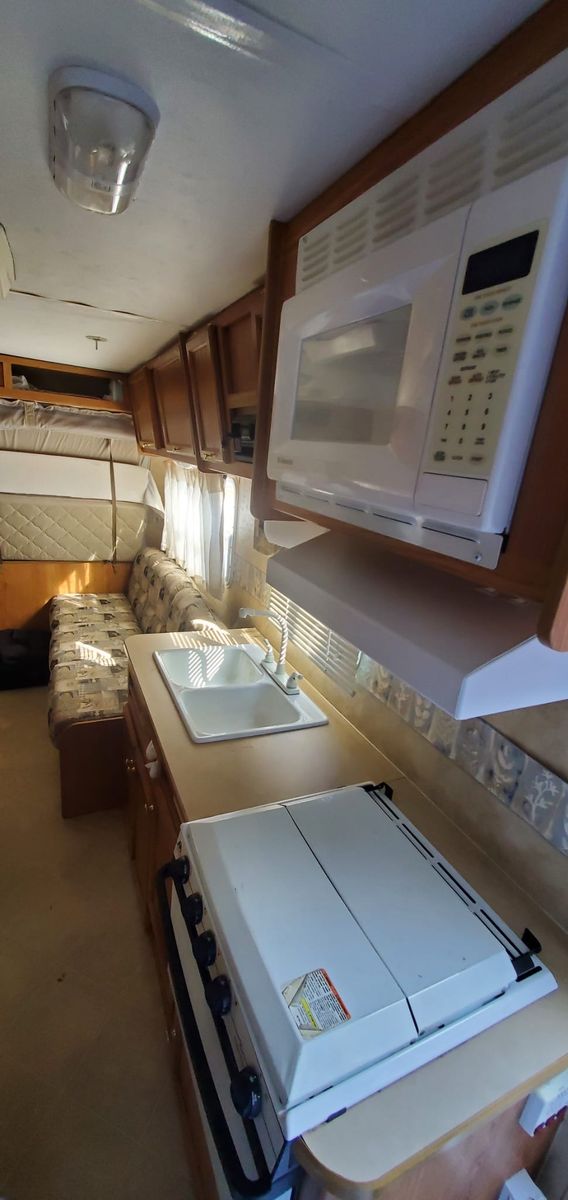 The 19 ft Trailer is in very good condition, everything works as it should, the heating and ac work perfectly, it has a kitchen with 4 burners and oven, Refrigerator with Freezer that works with Gas or Electricity in Perfect condition, The bathroom is complete with shower and bathtub, the kitchen has several compartments to store food or other things all with doors so that nothing falls on the trip. The armchair is very comfortable and becomes a bed, the dining room works as a bed too, it has an extra closet for clothes, the tires are new, new battery, it has a portable gas stove to be able to install it on the side of the trailer, includes with 2 propane tanks, it has a smart TV with DVD player and radio. 7 people can sleep, the bedroom canvases do not have any cracks, and includes a portable fan for each bed. It has an entrance for a hitch ball in the back of the trailer, so you can tow a small boat or a basket to carry more provisions