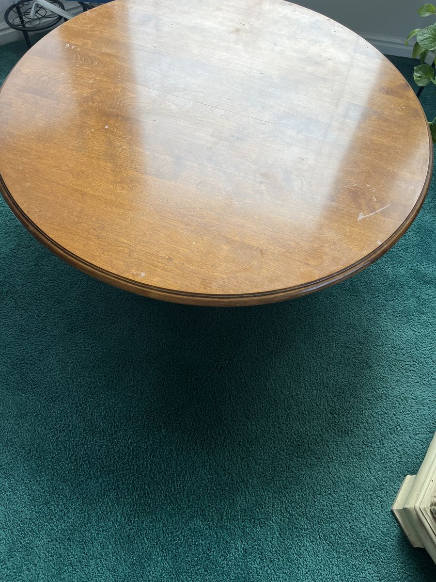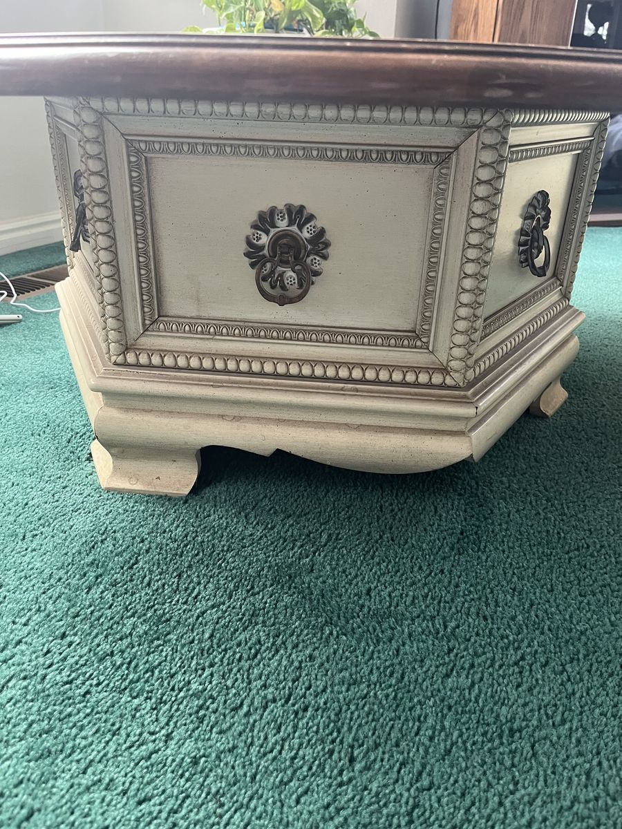 ApplePayBeautiful matching 2-piece table set featuring a large round coffee table and a coordinating storage side table.