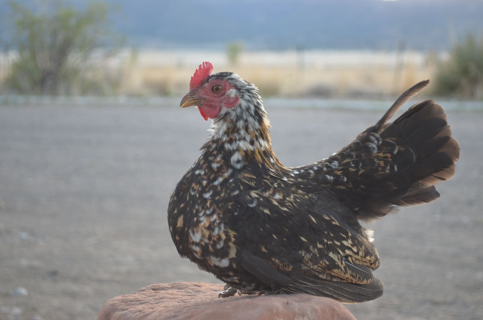 I have four roosters (two orange and white, two black and white) and three hens (two grey, one black) available. They are all purebred and are about a year old.
