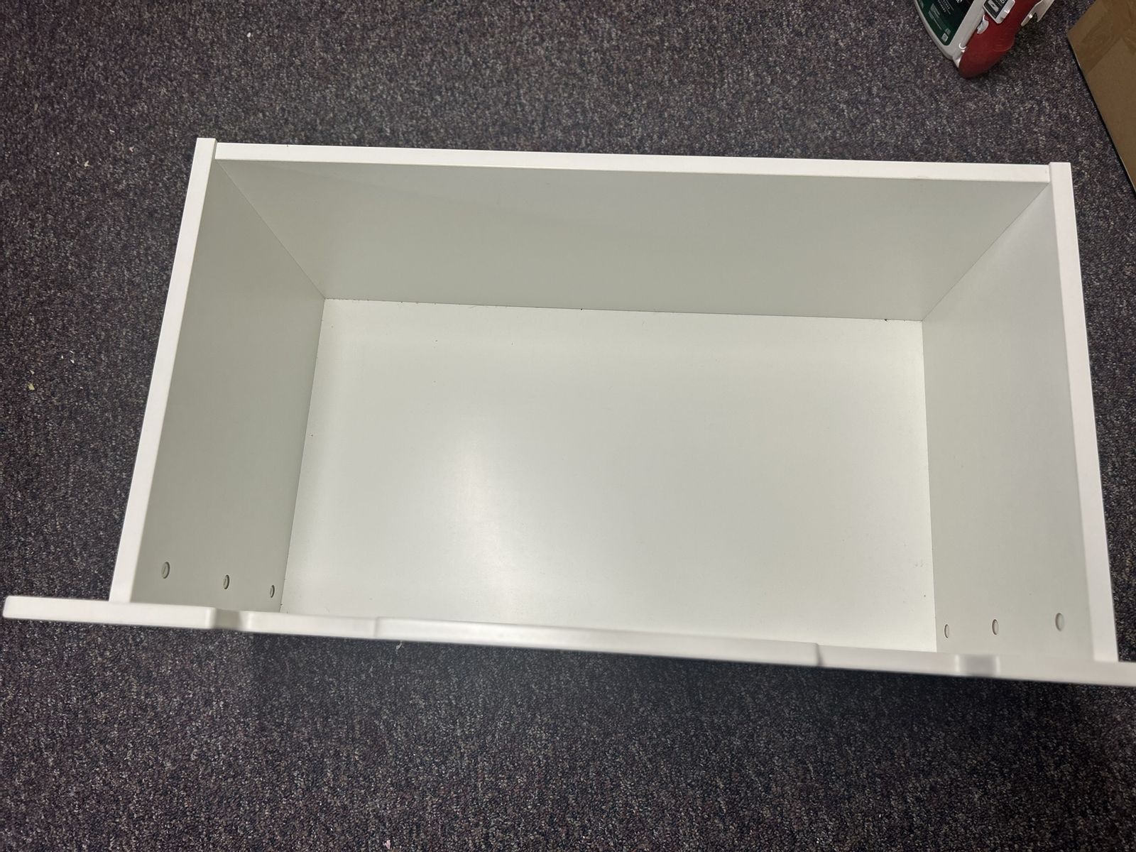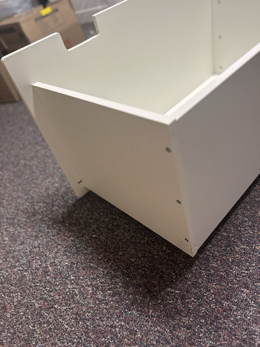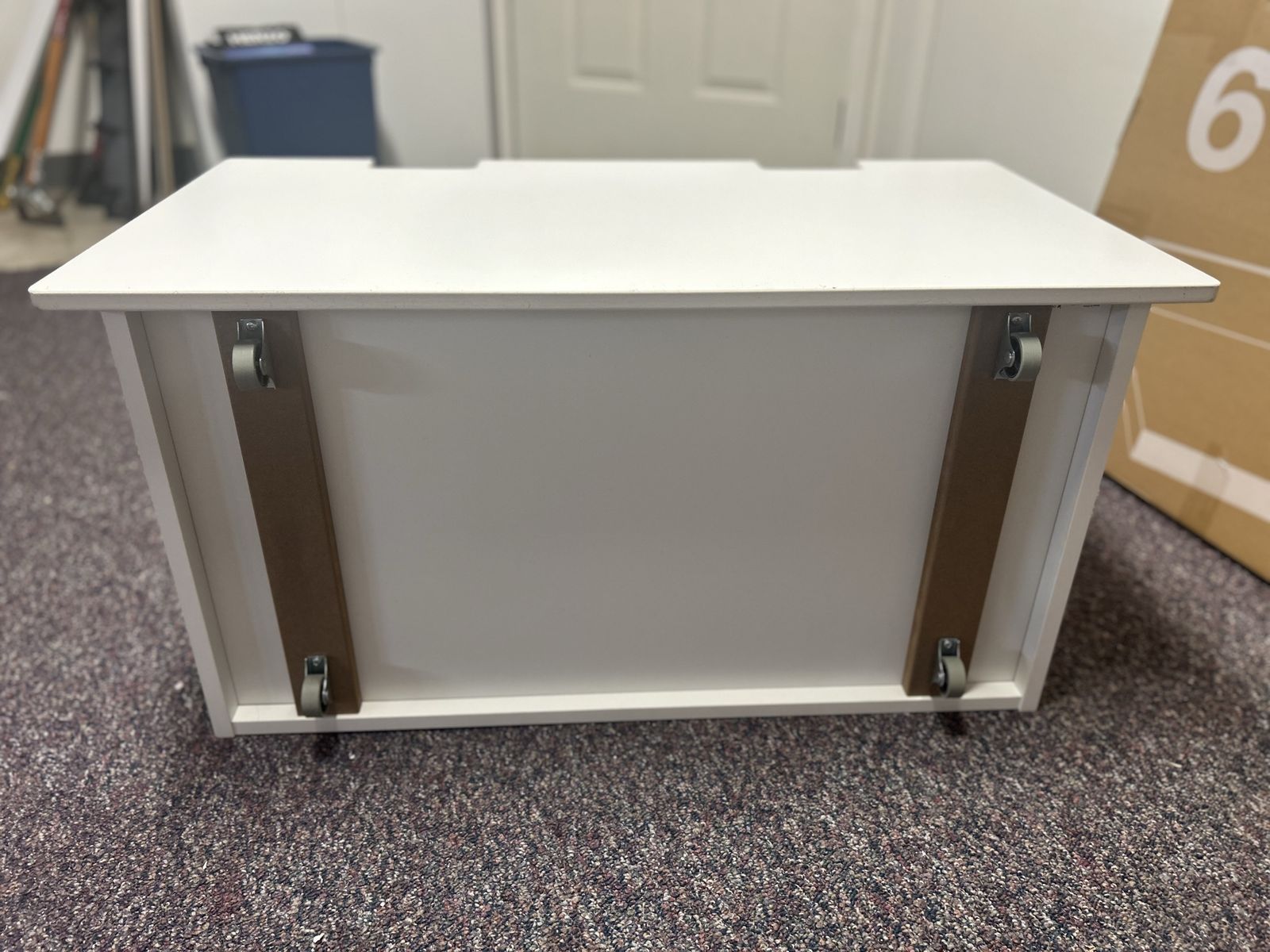 ZelleClean white storage box on wheels. Great for sliding under bed or in a closet. Good for organizing toys, clothes, or other stuff.