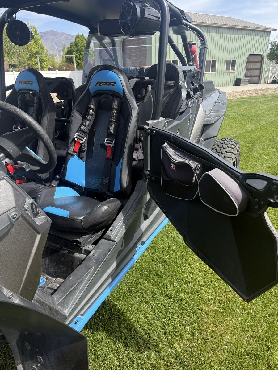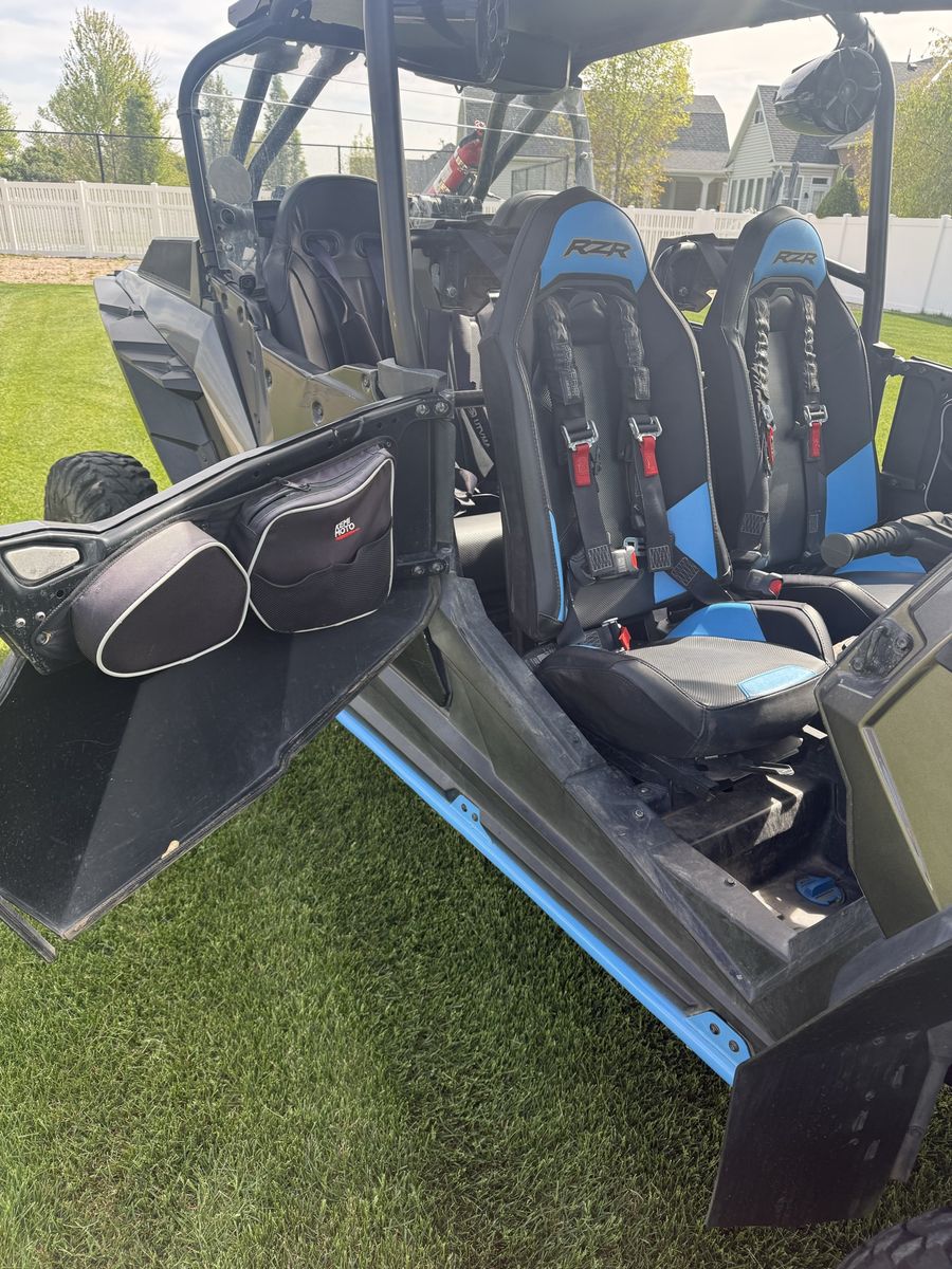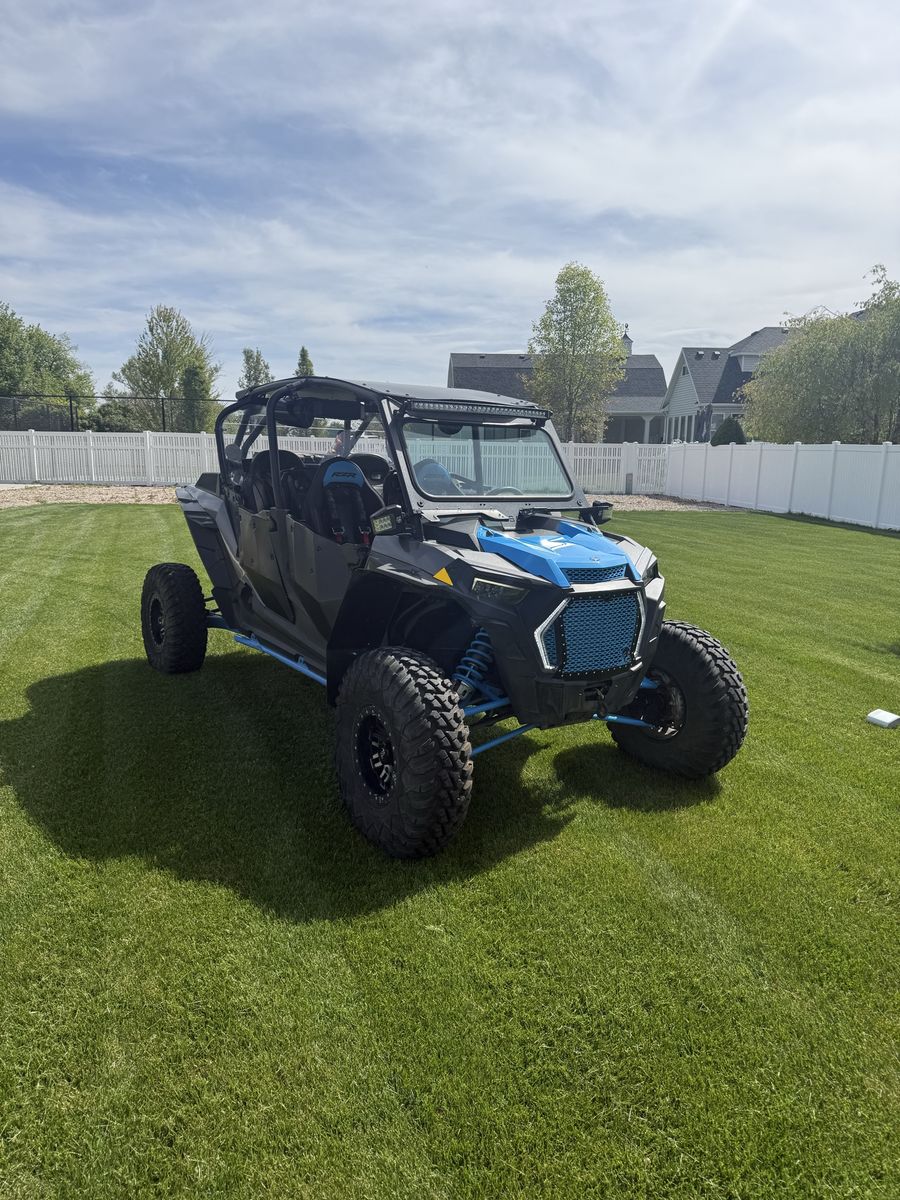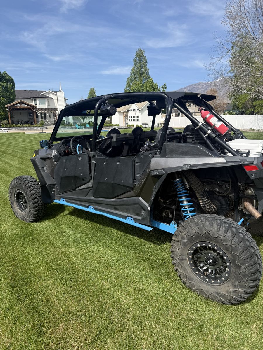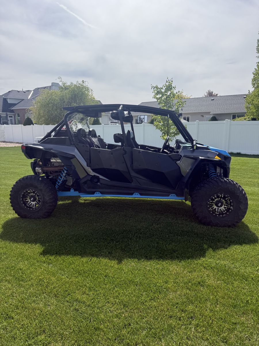 2019 Polaris RZR 1000 Turbo 2,523 Miles Brand New Clutch - Primary and Secondary Tons of upgrades: Front Windshield with Vents Rear Windshield Door Bags Upgraded 4 point harnesses Upgraded Bench Seat with center seat Street Legal Kit Stereo with Bluetooth LED Light-bar, LED lights on Side Mirrors, LED rear lights, LED rock lights (under-glow), Whip Lights for flags (2 mounts) Front Winch Built in Tool Box Built in Cooler Aluminum Roof 34” Tires