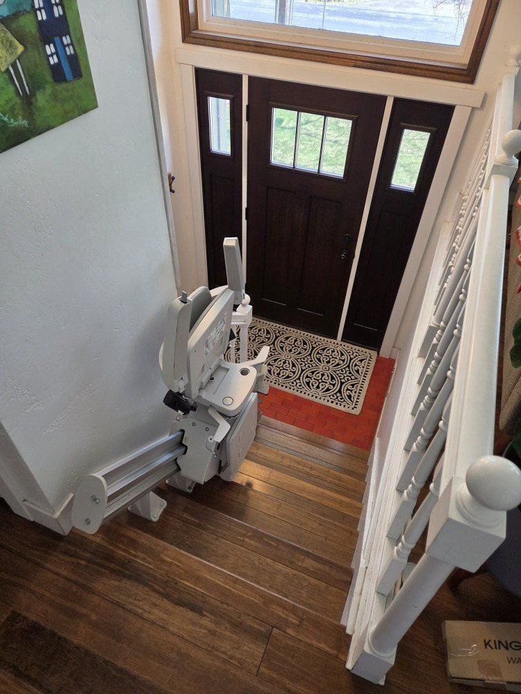 This is a barely used Bruno Stair Lift for a 7 stair split entry setup. this is super easy to install. This exact system costs $12,000! save yourself a bunch of money and pick up this two chair set. stair lift stairlift stair chair stairchair bruno