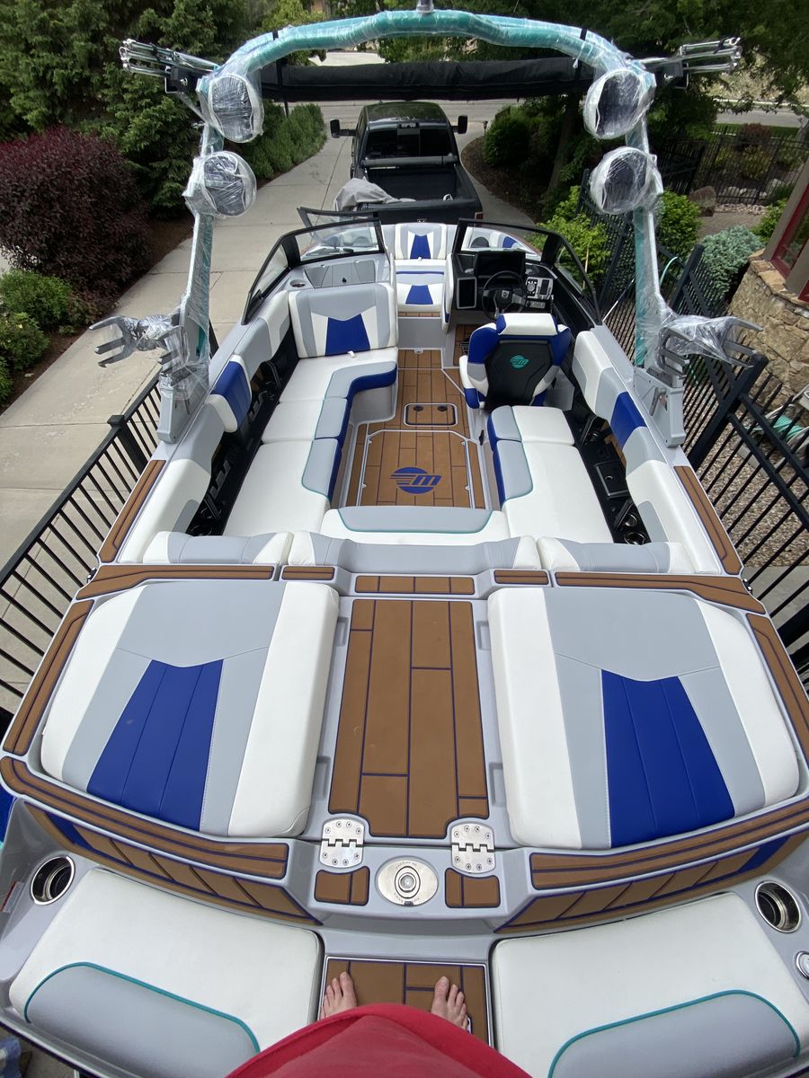The 23MXZ is one of Malibu’s most versatile and family-friendly layouts. Tons of seating with the pickle bow, premium fit and finish, legendary surf wave, and room for everyone to relax comfortably. Awesome boat for skiing, wake boarding and especially surfing. Comes with the surf band so the rider can control the wave. Stereo system loud enough to wake up the whole lake.