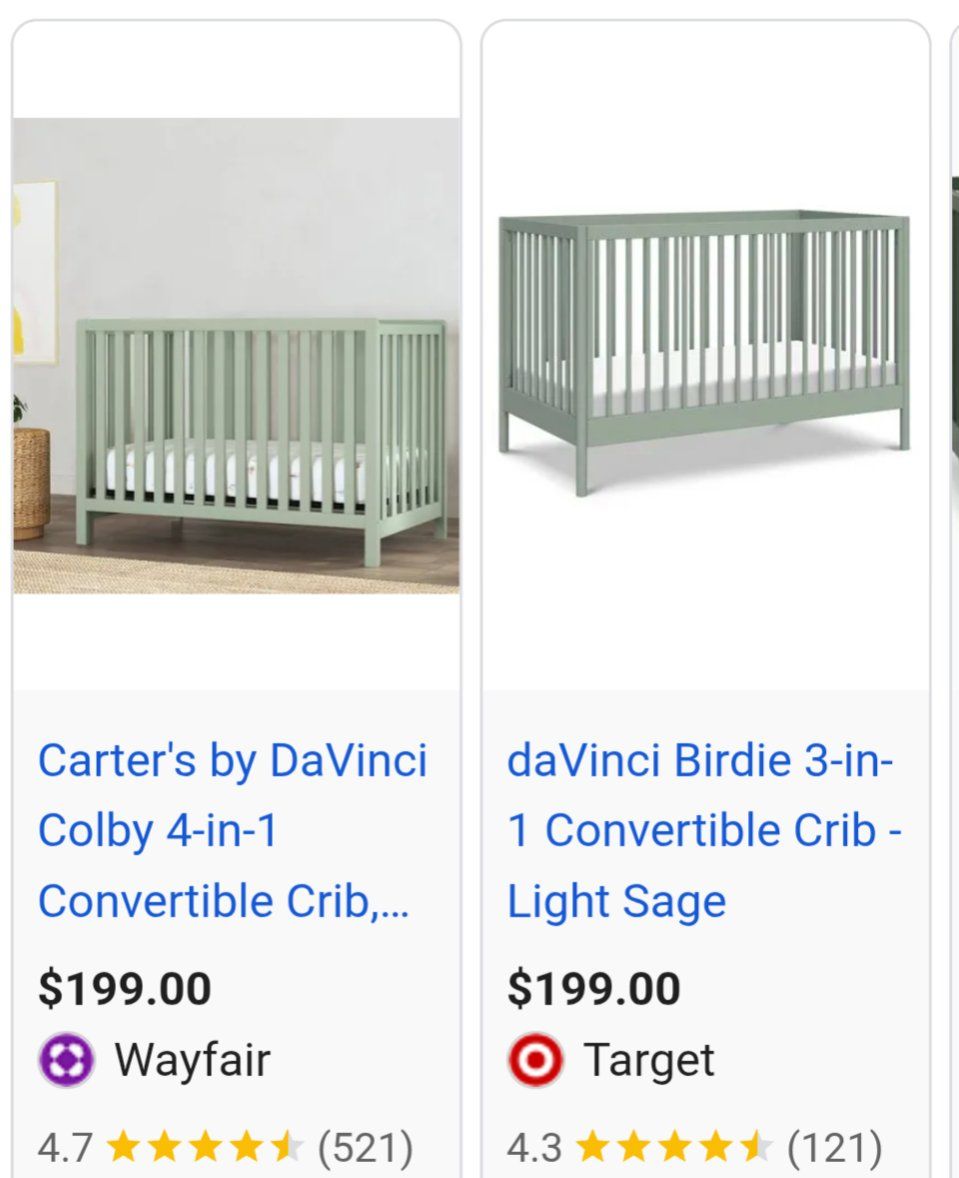 Included Items: Crib: daVinci Birdie 3-in-1 Convertible Crib in Light Sage. Mattress: Letmxiu Premium Crib & Toddler Mattress. Features a 100% knitted fabric cover and a premium fleece surface for extra comfort. All original hardware is included.