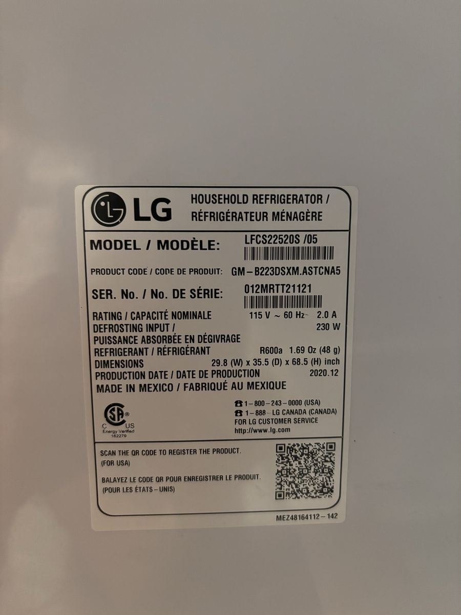 ApplePayLG French door refrigerator with bottom pull-out freezer. About 4 years old and works great.