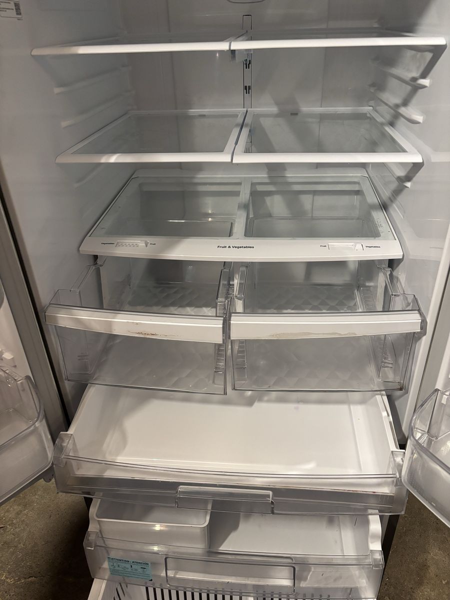 Features:• French doors (double doors on top)• Bottom freezer drawer• Stainless steel finish• Energy efficient• Spacious interior