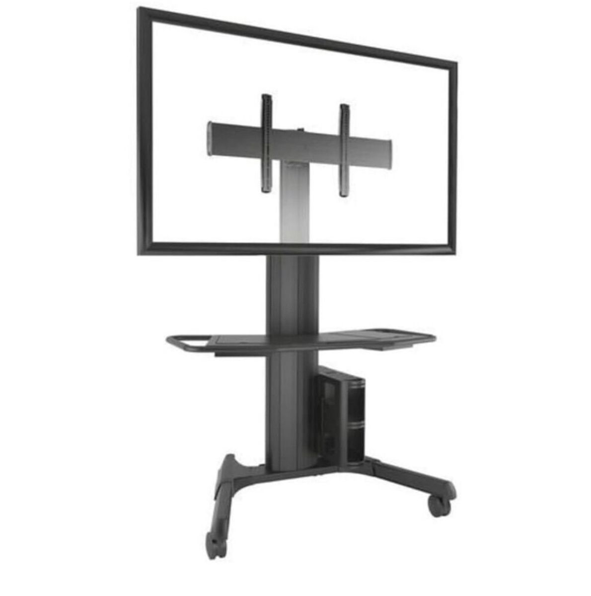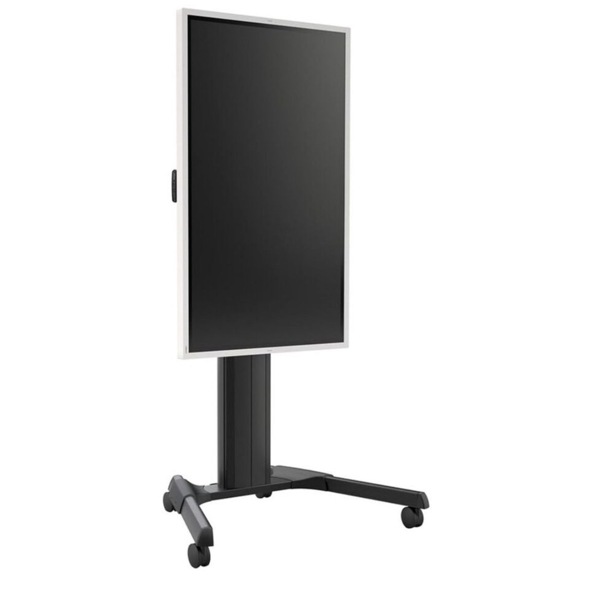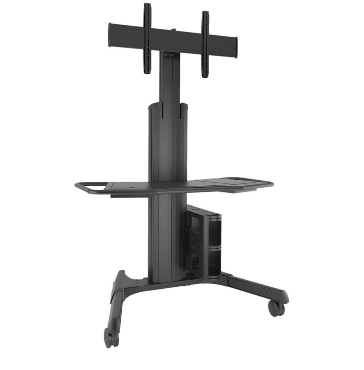 This mobile Fusion cart incorporates rounded edges and sleek Features to give the cart a softer professional feel that fits well in corporate and classroom environments. The height can be adjusted by one person via hand or 1/2 Hex bit on a power drill. See Less