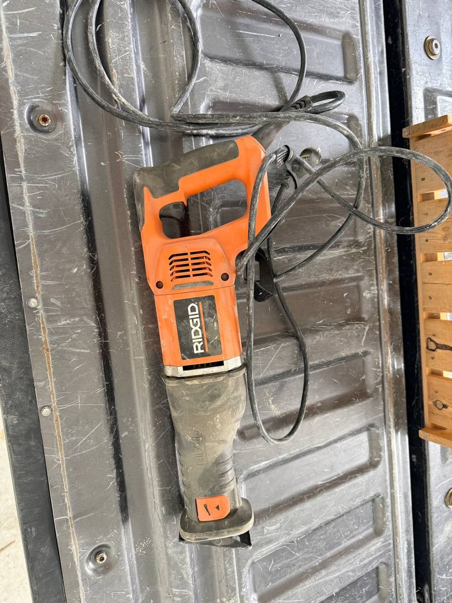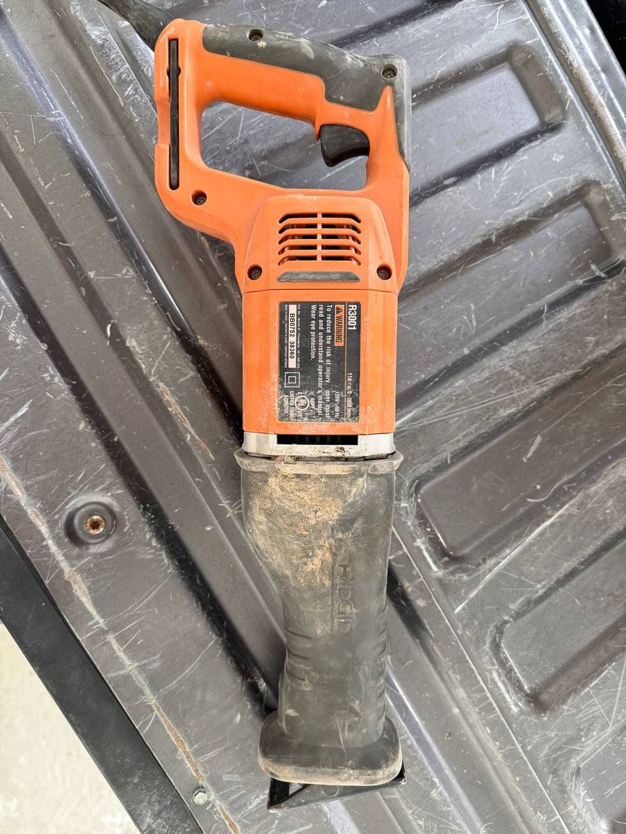 Used RIDGID R3001 corded reciprocating saw. Dusty from storage with normal cosmetic wear as shown. Saw only, no case or blades shown. Selling as-is. Pickup in Lehi.