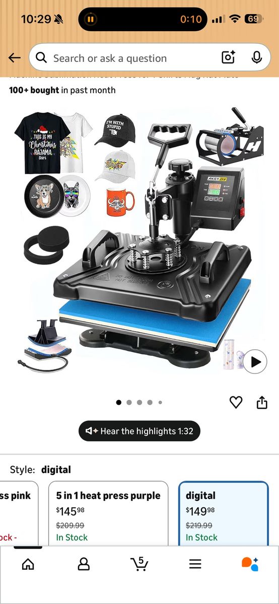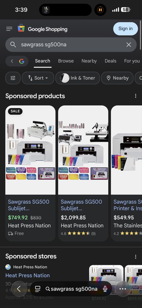 VenmoI have this sawgrass sg500 and heat press set. Come with multiple ink sets, heat press, paper, all the attachments needed to start printing on shirts, hats, cups anything truly.