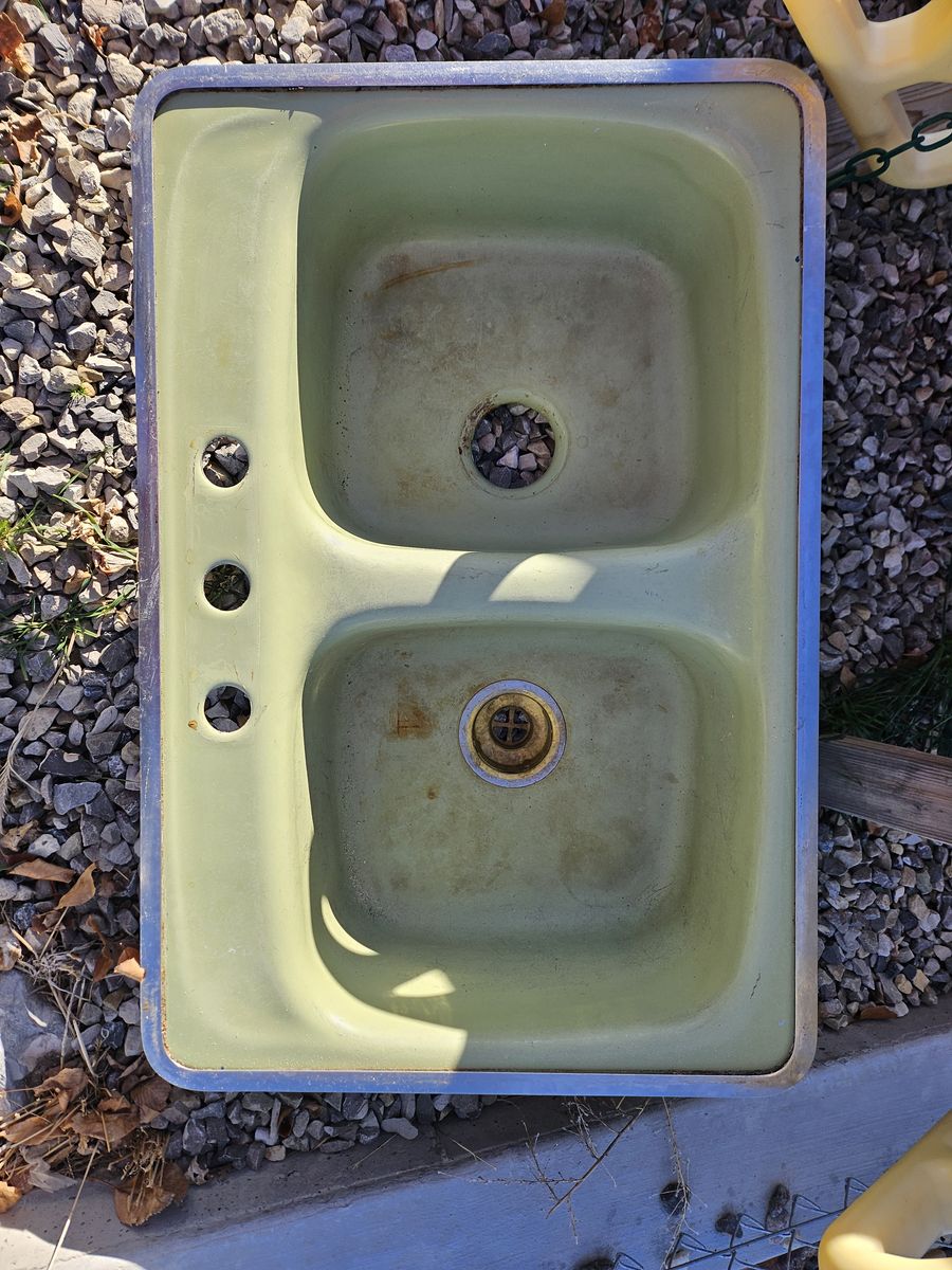 Venmo1970s green cast iron sink. Came out of a kitchen remodel, Good sink with a lot of life left in it
