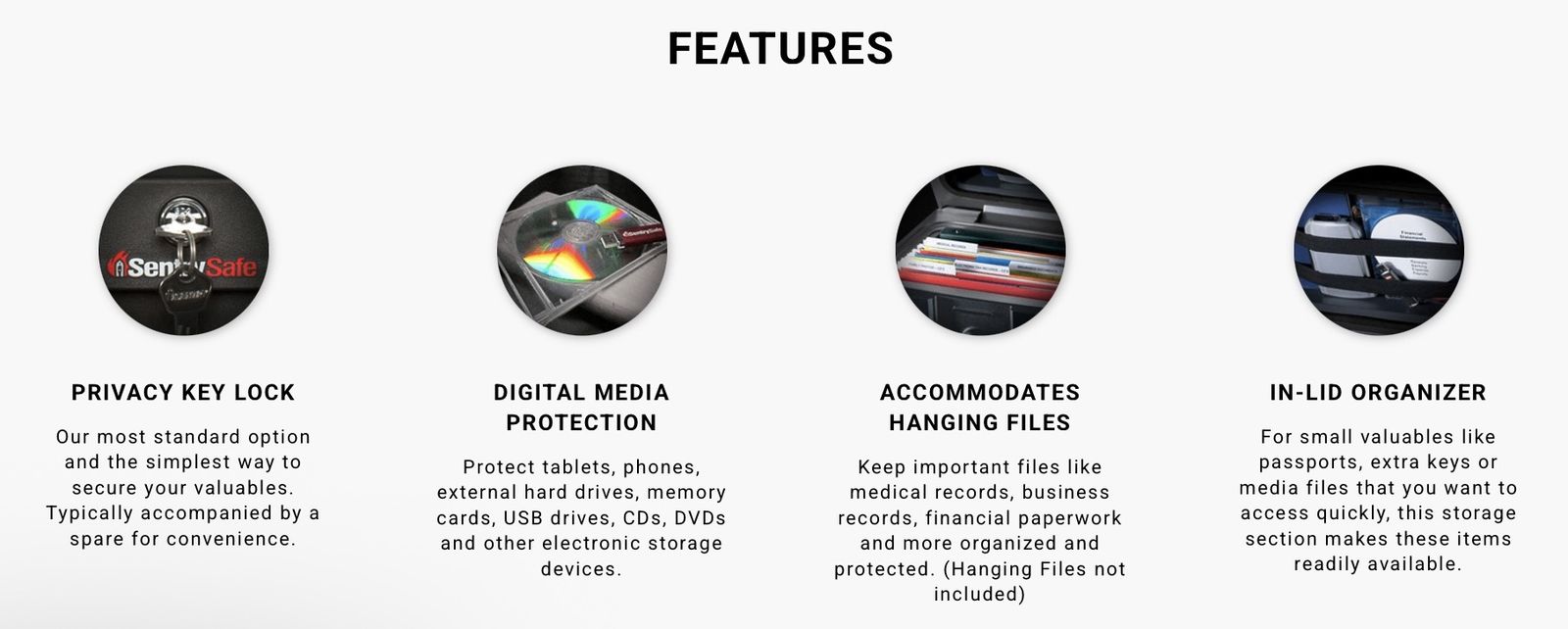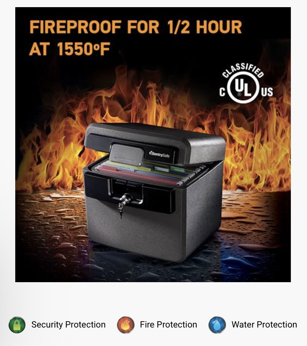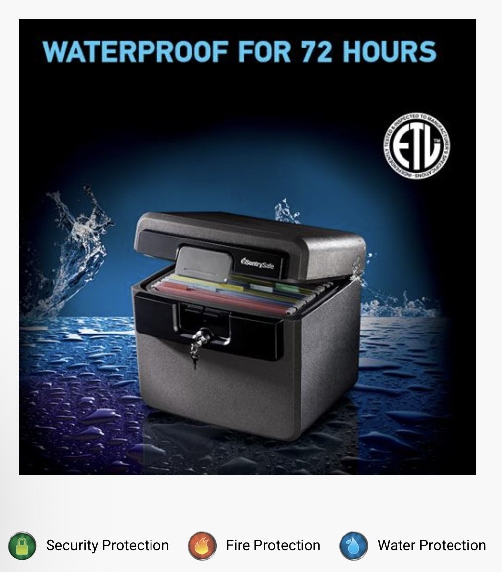 Cabinet holds up to 40 standard hanging file folders making it the ideal storage solution for your important family or business documents. In lid organizer keeps frequently accessed items such as passports, check books, and digital media within easy reach. Complete with ETL Verified flood protection and UL Classified fire protection to provide true peace of mind for your irreplaceable valuables. Brand new in box Sentry Safe model HD4100.