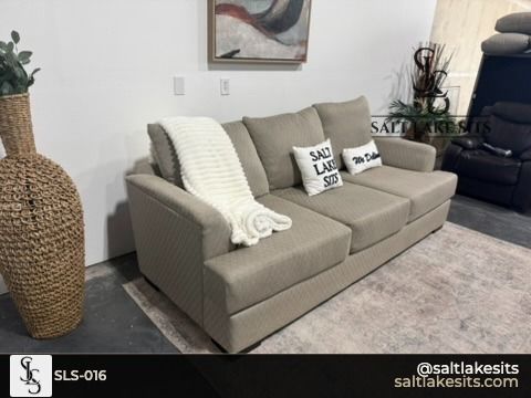 Taupe/Mocha 3-Seat Sofa — Great condition, professionally cleaned. Classic silhouette with a textured fabric that works in any space. Dimensions in photos.