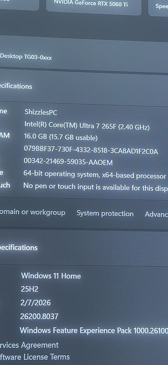 ZelleUltra 7 265F Intel Processor NVIDIA 5060TI 16GB 16GB DDR5 RAM @ 5600/ms 1TB SSD