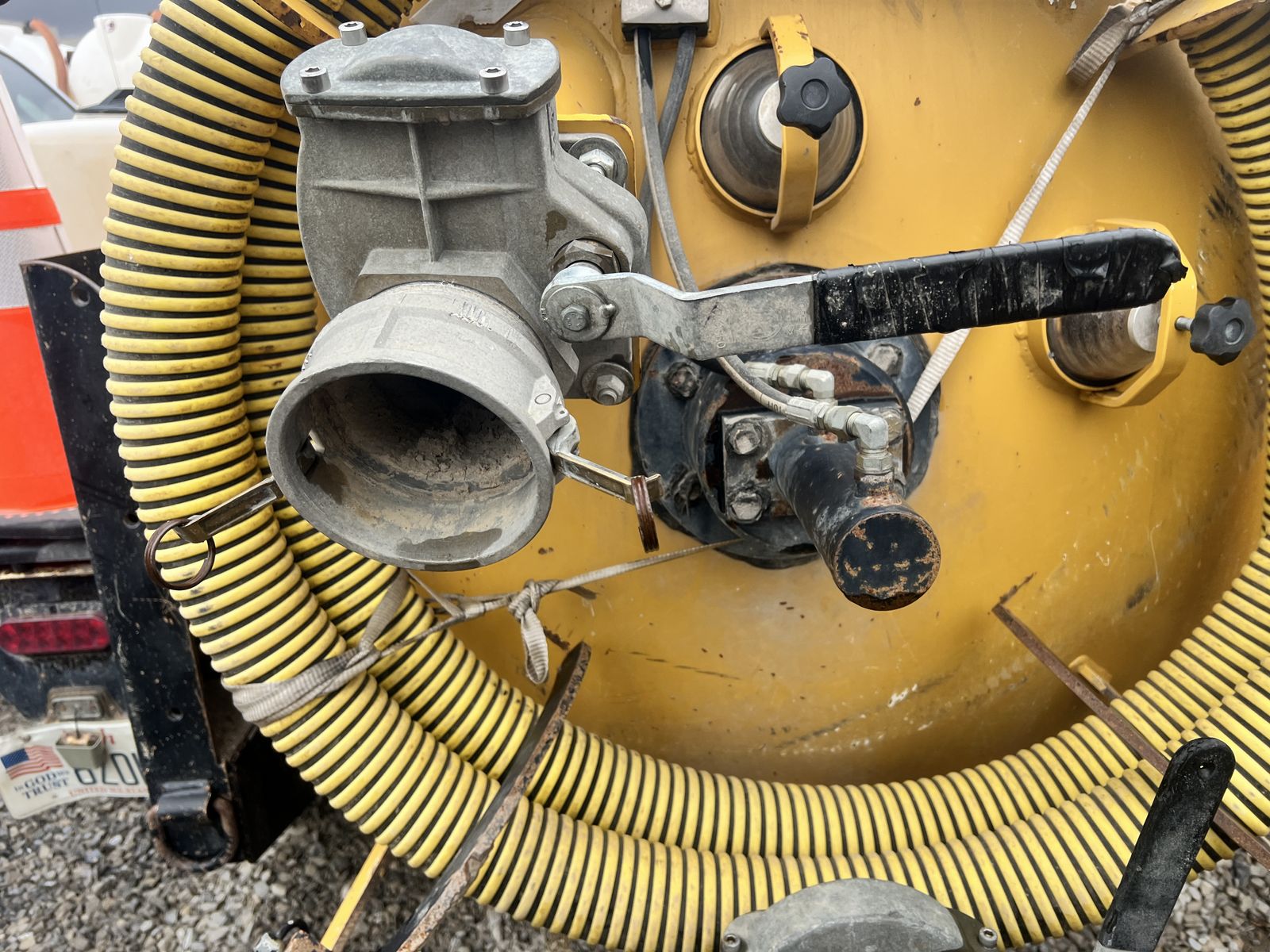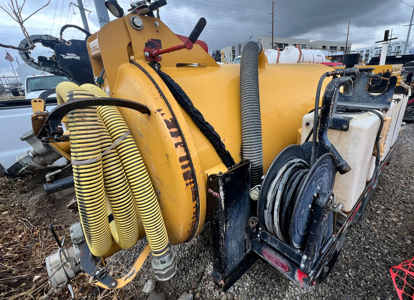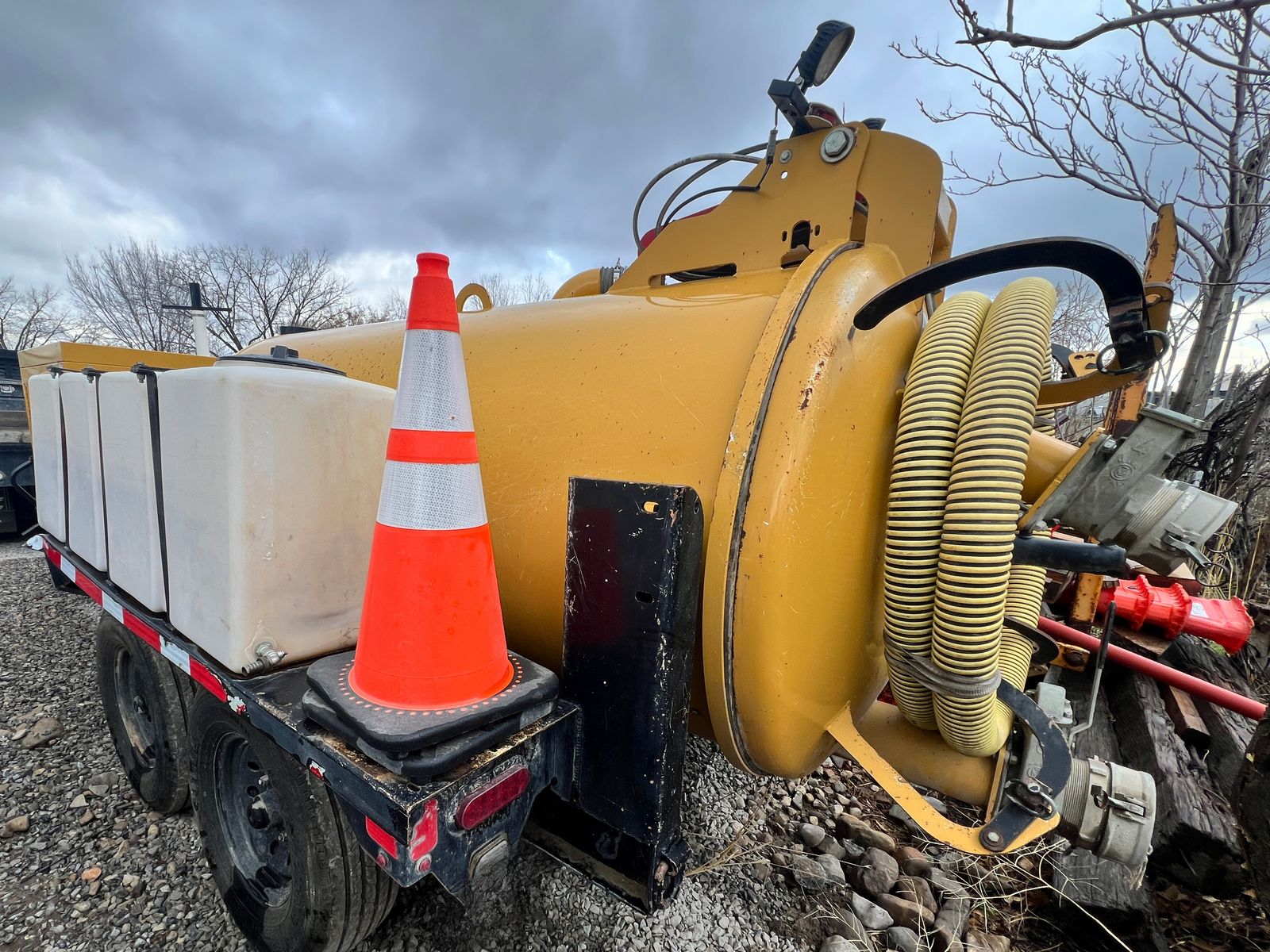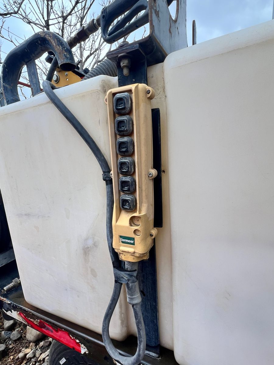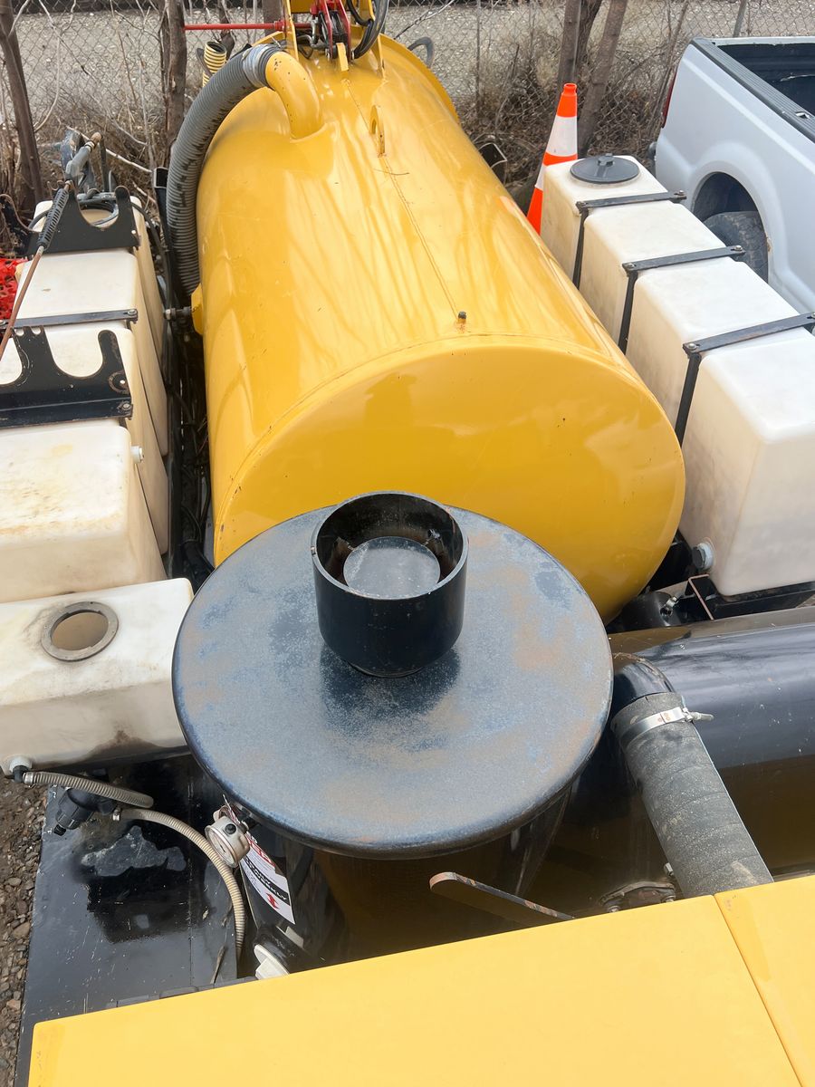 2023 Vermeer LP873SGT Vacuum Hydro Excavator, 1,430 hours, 38 HP EFI gas engine, 800-gallon spoils tank, 400-gallon water capacity, 1,000 CFM vacuum blower, factory Vermeer integrated dual-axle trailer, 14,000 lbs GVWR (7,000 lbs per axle), ST235/80R16 Load Range E tires, electric brakes on all hubs, remote control pendant, standard control panel with hour meter and fuel gauge, Cyclone Four-Way Valve Silencer (CVS) filtration system with 0.5 micron filtration, polymer liner in debris tank, hydraulic rear claw door, hose reel with vacuum hose, PVC pipe storage tubes, LED lighting package, work lights, hand-built in USA by Vermeer MV Solutions, complete ready-to-work package, well-maintained, good cosmetic condition.