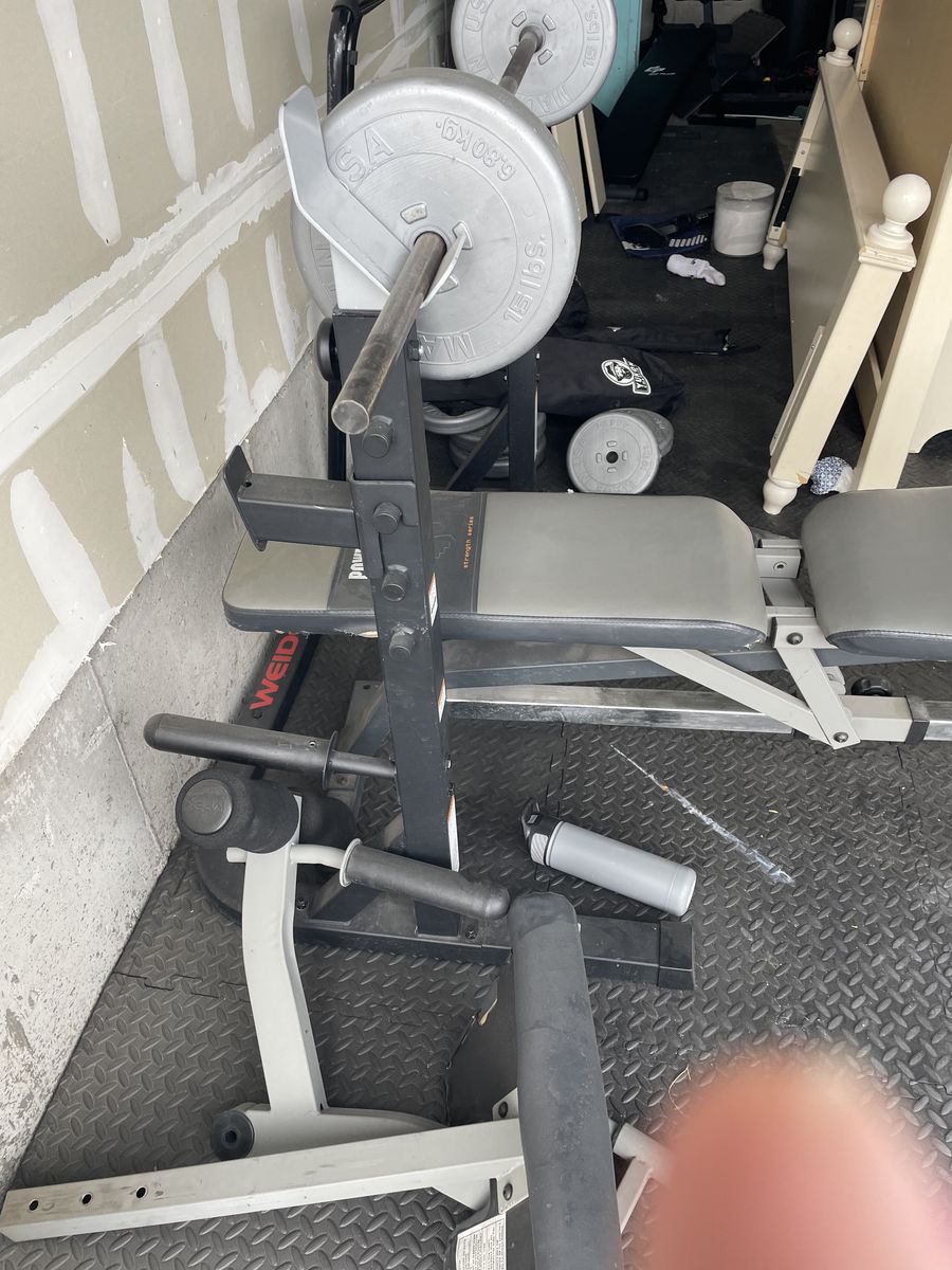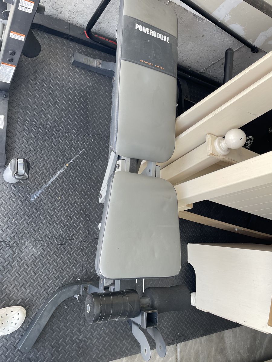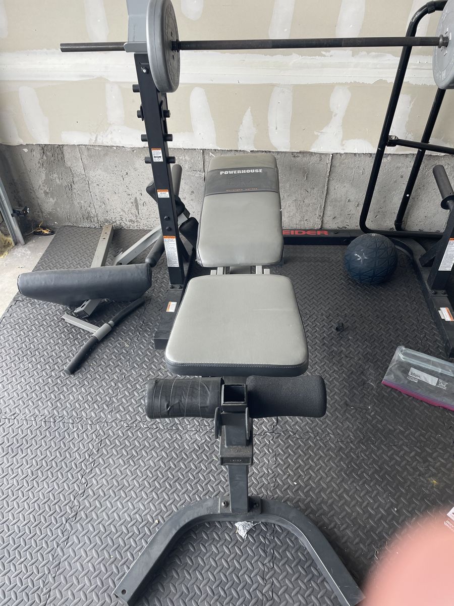 Nice bench set with bar holder and bench with leg raise bars if needed