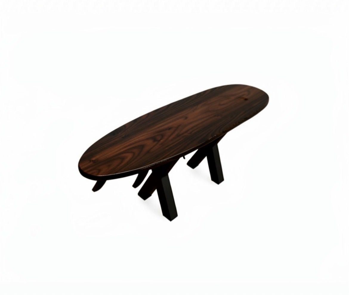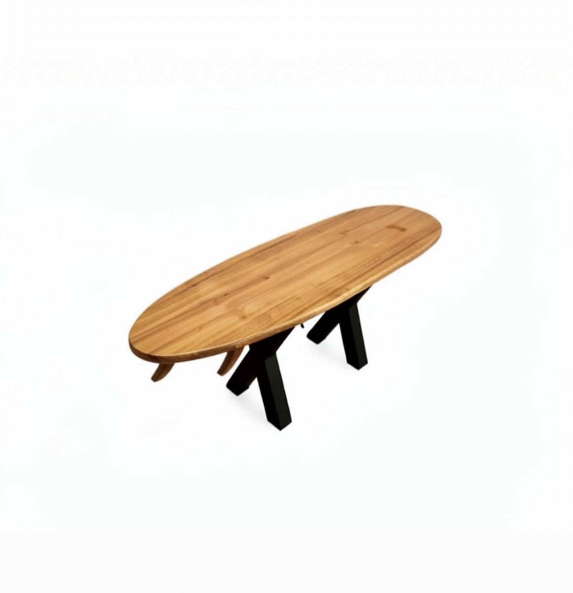 Built from real hardwood and finished with a smooth epoxy resin top, this table has a deep gloss shine that enhances the wood grain and gives it a sleek, high-end look. The surfboard shape adds a relaxed beach aesthetic, while the thick, heavy-duty metal legs provide strength, stability, and a modern edge.