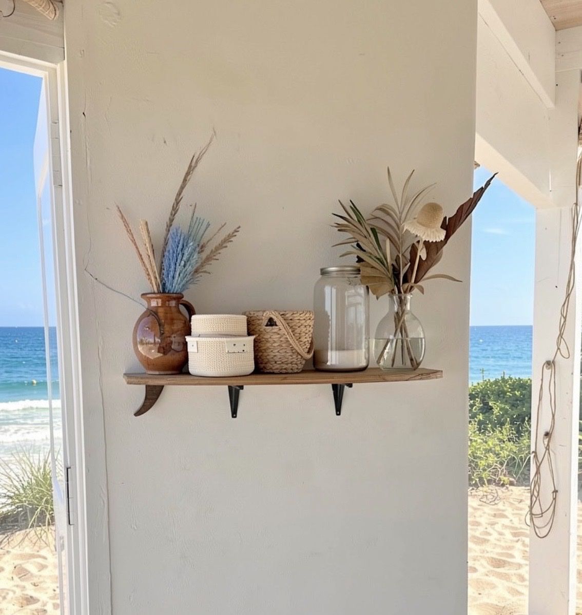 Paired with strong metal wall brackets, this shelf is built to be both sturdy and stylish—perfect for displaying decor, plants, or everyday essentials while adding a beach-inspired feel to any room.