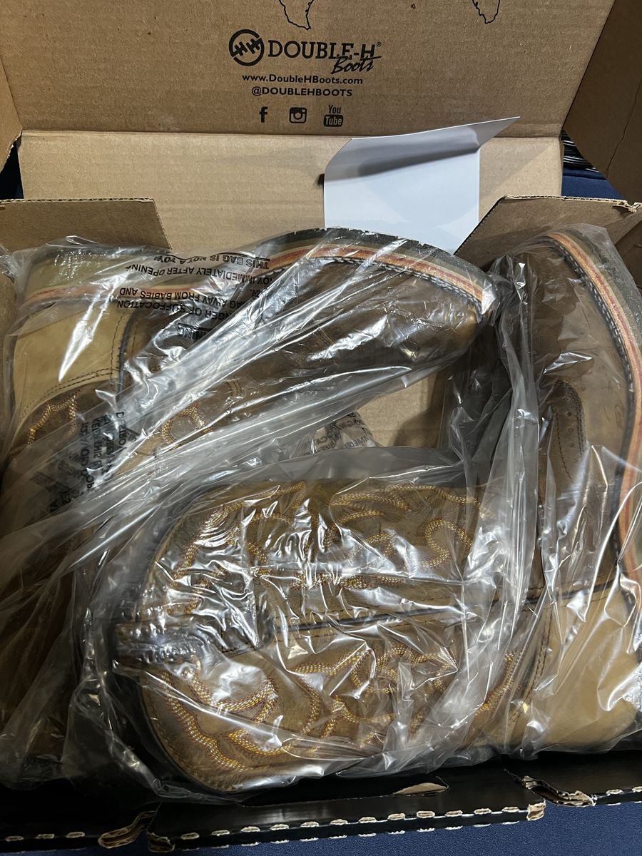 Brand new double H boots in box Never worn. Dwight steel toe (DH3567) Asking $250 Size 12
