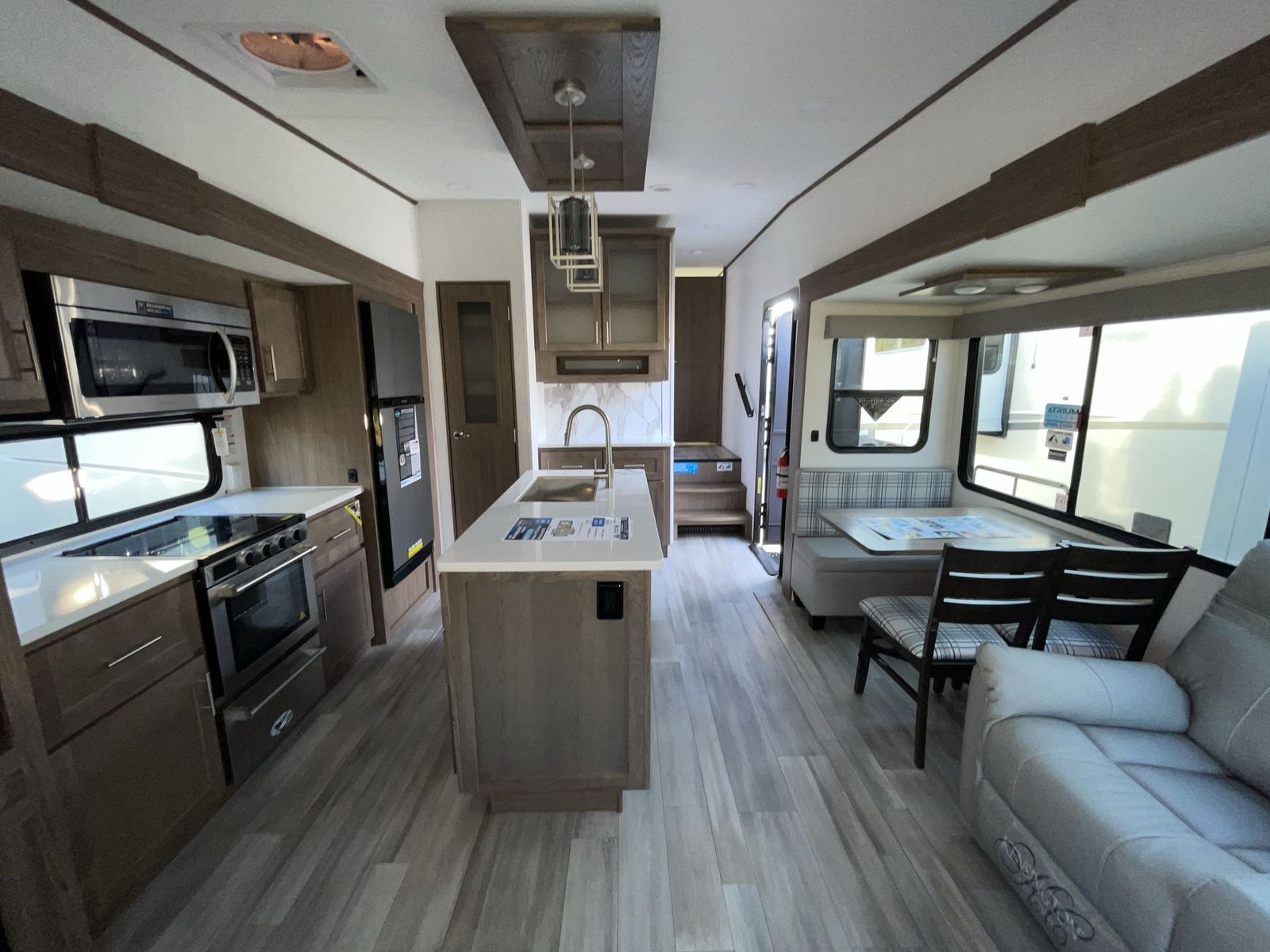 A benchmark chassis creates a space saver upper deck with each one of these Avenue All-Access fifth wheels by Alliance RV! The 101 in. wide-body construction gives you more room to walk around and the flush slide out floors throughout prevent any tripping. There are composite sidewalls inside and out, and PVC roof for extreme durability. You are sure to love no carpet throughout making each Avenue All-Access easy to clean and allergen free, not to mention pet friendly. You can maximize your space throughout with innovative storage solutions like the hidden storage behind the TV, inside the end tables, ottoman, and dinette chairs. These units also include the OTG Solar Package with a 200 watt solar panel, 15 amp MPPT charger, multiple outlets, and more to keep you powered up!