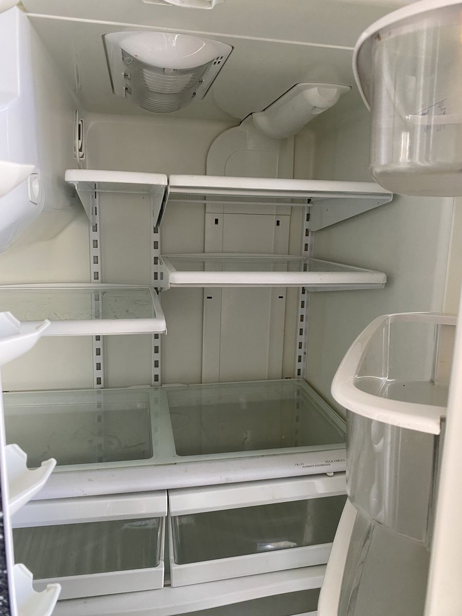 ApplePayIn good shape. Double doors. Clean. Bottom freezer. Fridge works, unsure about freezer. We defrosted it and then never tried again.