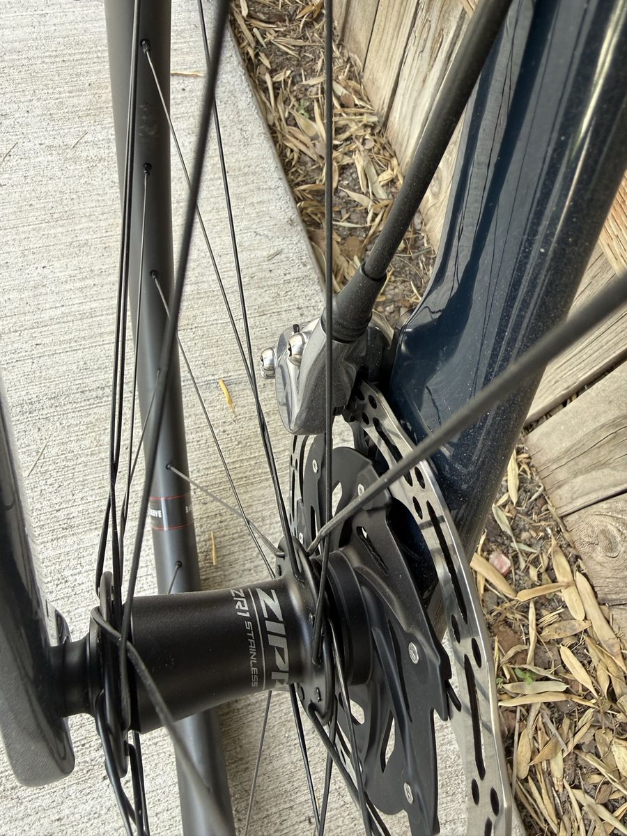 This bike is NEW. It has been test ridden a couple of times. It has a cosmetic scratch in the downtube from transportation. :/