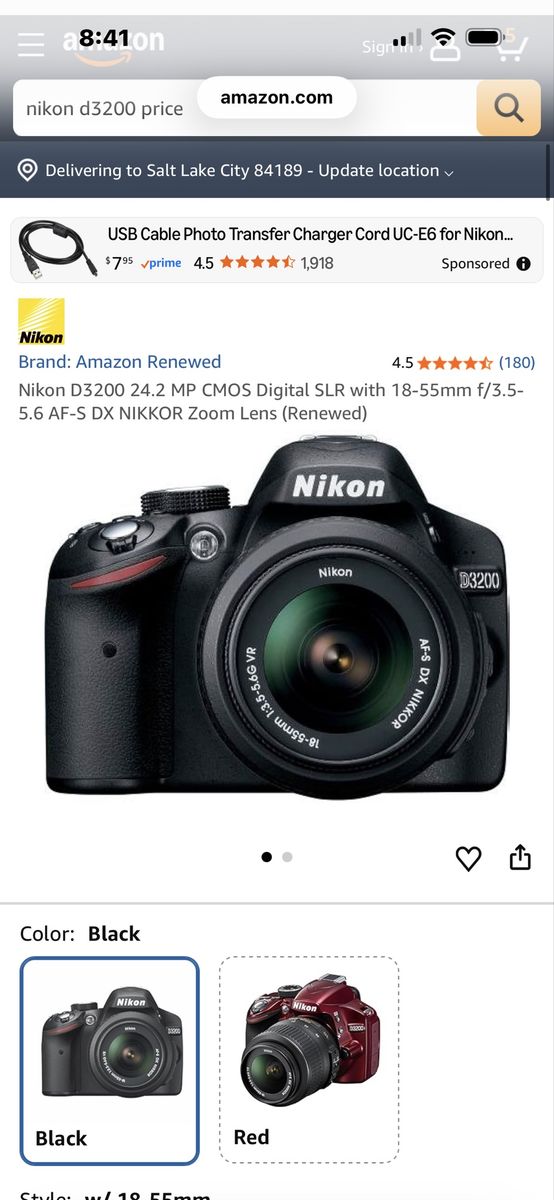 Like new Nikon d3200 camera with strap, lens battery & charger! Use it today! Excellent condition! Full package! Sweet camera for a sweet price! This exact camera is 318.99 on amazon now refurbished! Don’t pay retail prices, call Dustin now instead at 801-205-3404, I need it gone!
