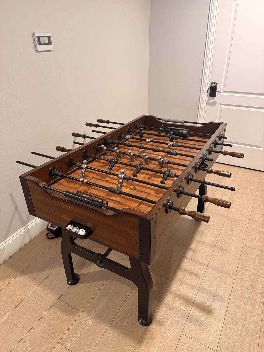 VenmoFoosball table is 53 inches tall, handles are 51 inches wide, and the table is 59 inches long.