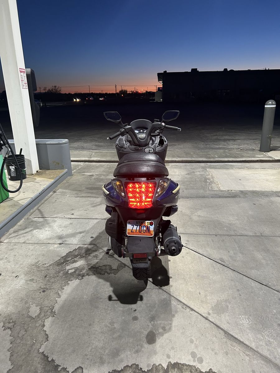 2007 GTS 250i RV250cc single cylinder 4 stroke engine automatic transmission full size Motor Scooter Freeway Legal 80+mph starts up every time title in hand 3k miles on odometer storage under seat fits two full size helmets alarm system steering wheel lock and key cover brand new front and rear brake pads new air filter carb cleaned new spark plug and oil changed everything works great no kickstart just push the button comes with license plate that you can transfer over to your name no need to go to the dmv