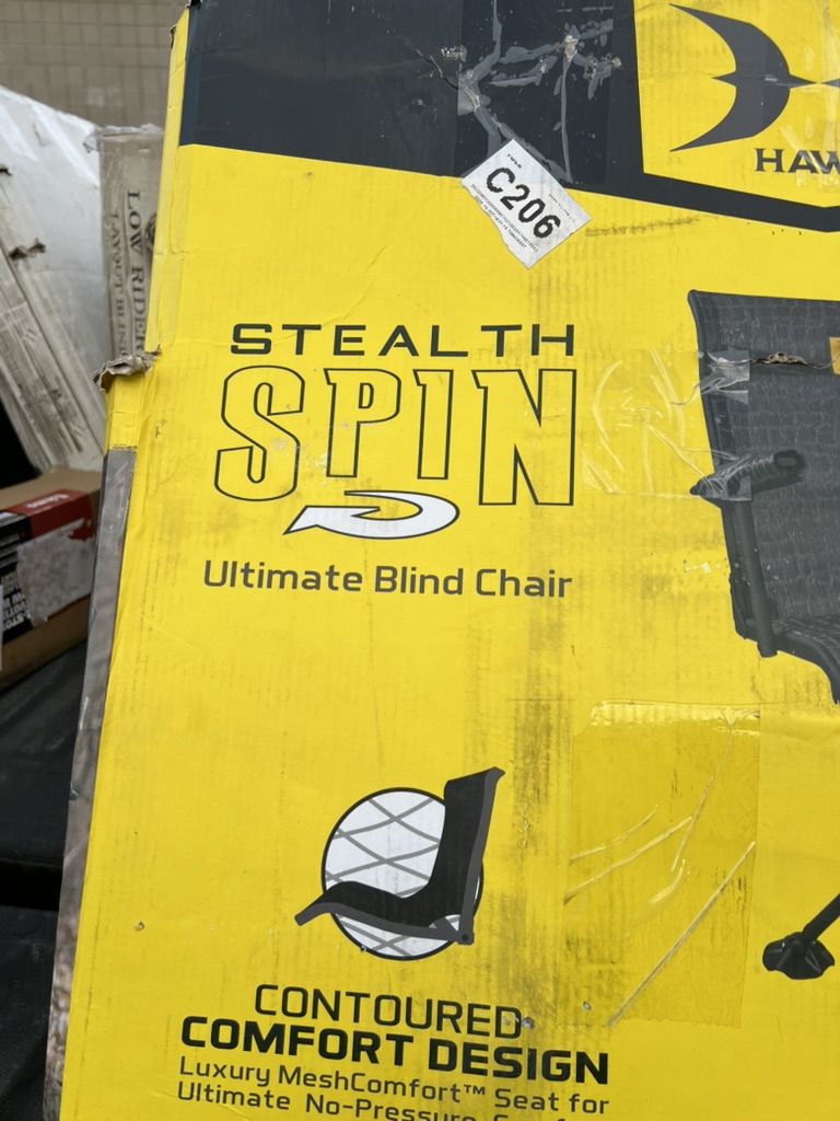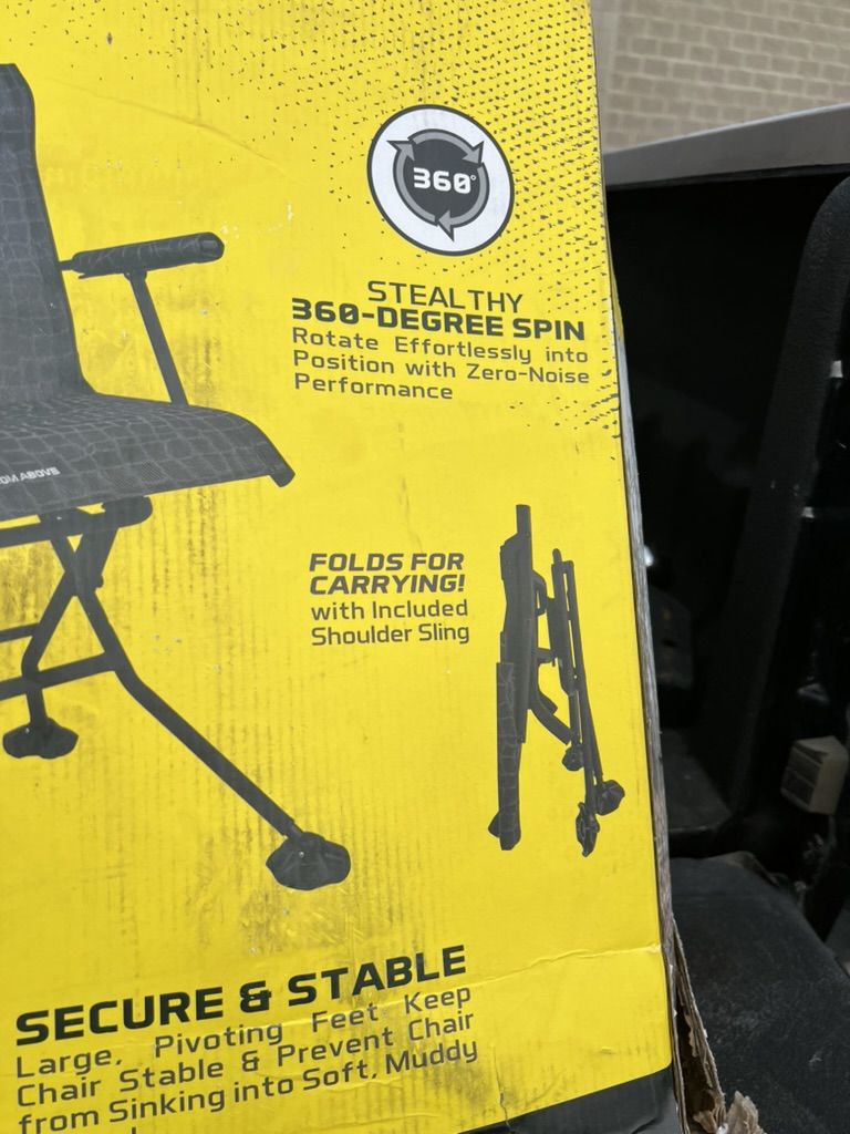 Hawk Stealth Spin Blind Chair - Bone Collector trusted, the Stealth Spin lets you be stealthily in perfect position when it's time to take a shot. Spinning a full 360-degrees, you can effortlessly turn to shoot out any side of your blind. Contoured MeshComfort backrest provides all-day support and cool breathability. Padded armrests for even more 'lounging' comfort while sitting. Quad legs and oversized, pivoting feet provide added stability and keep the chair from sinking into soft ground. Heavy-duty steel tubing & powder coating keeps it stable and ensures long lasting use. Quickly folds down for easy transport with included sling.