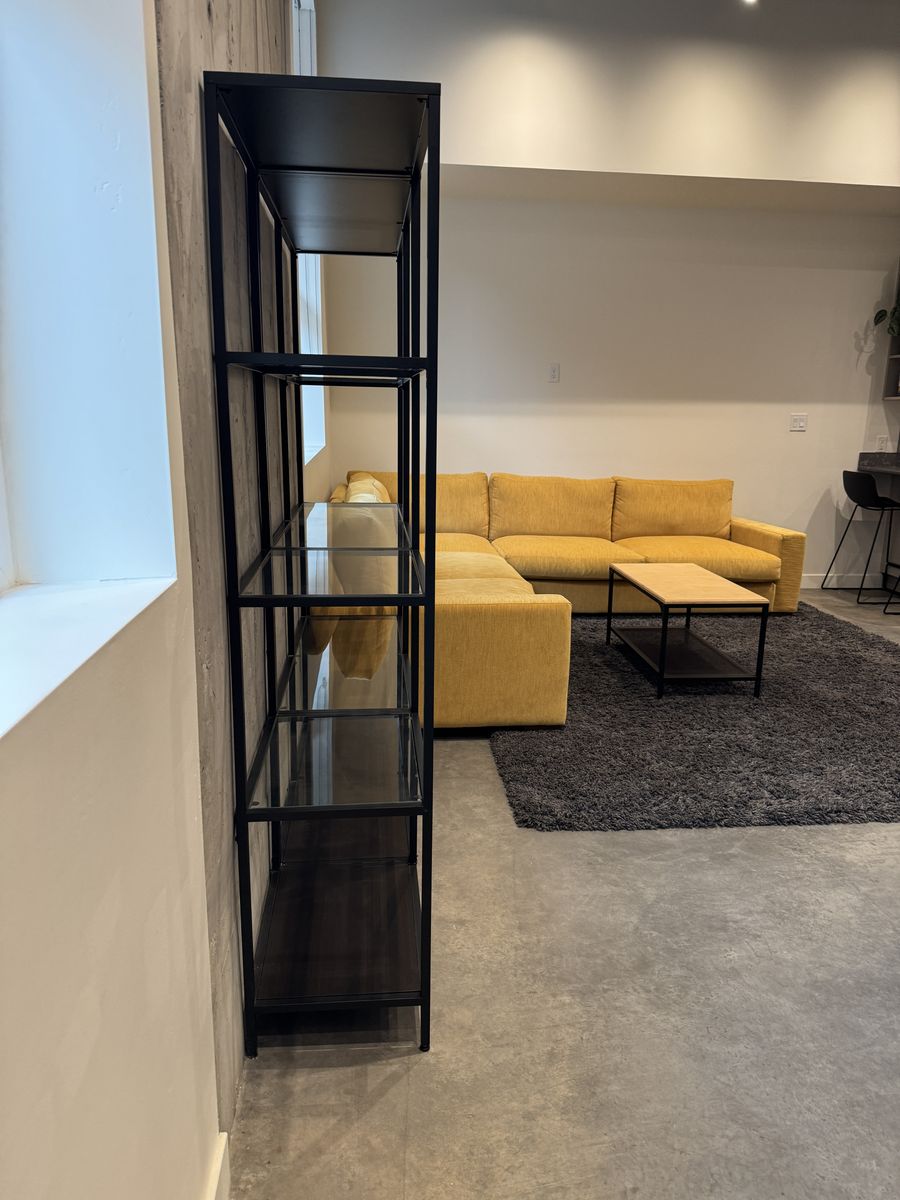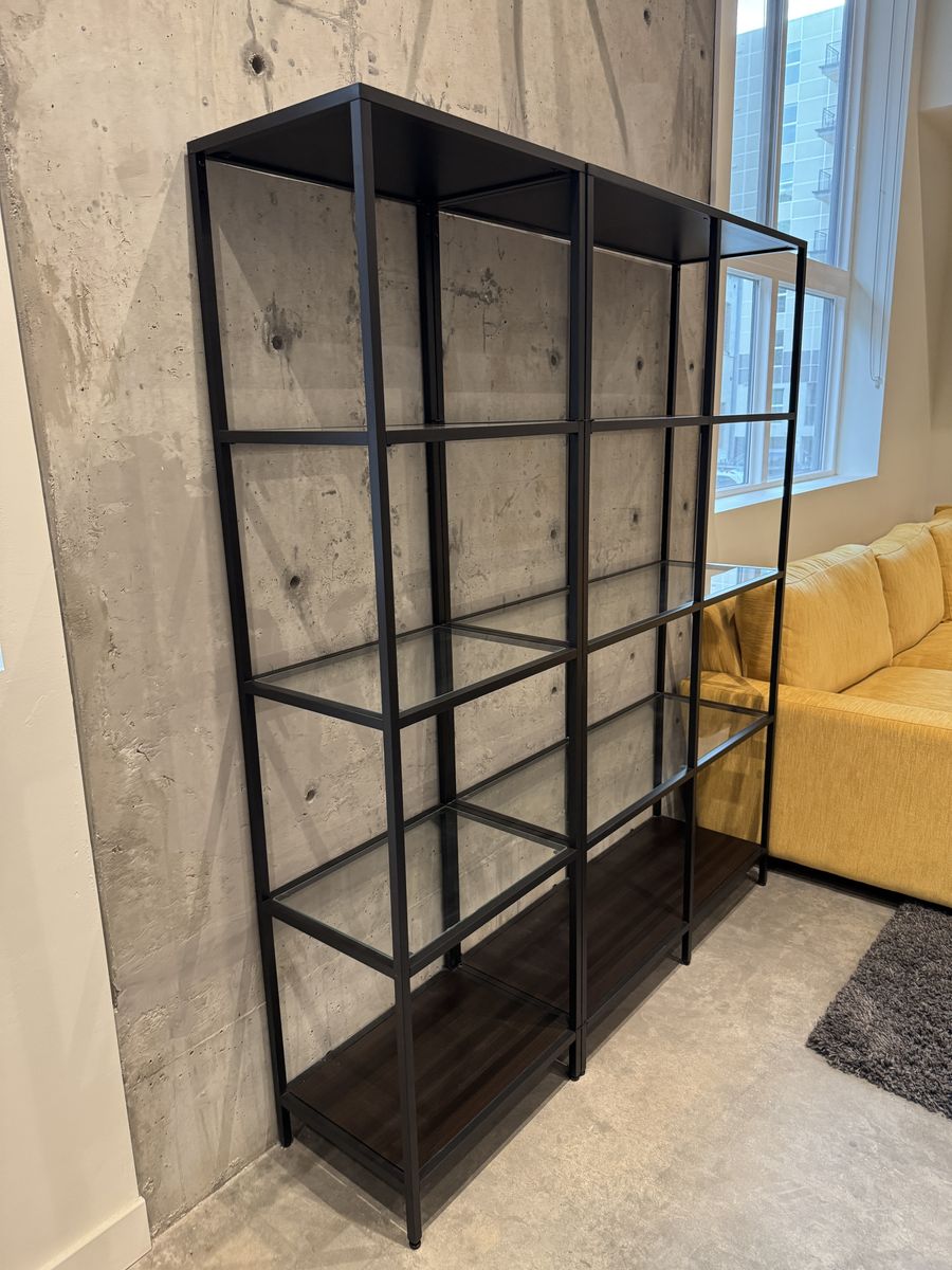 ZelleBeautiful black metal and glass shelves. Excellent condition, like new. $115 each, or both for $200