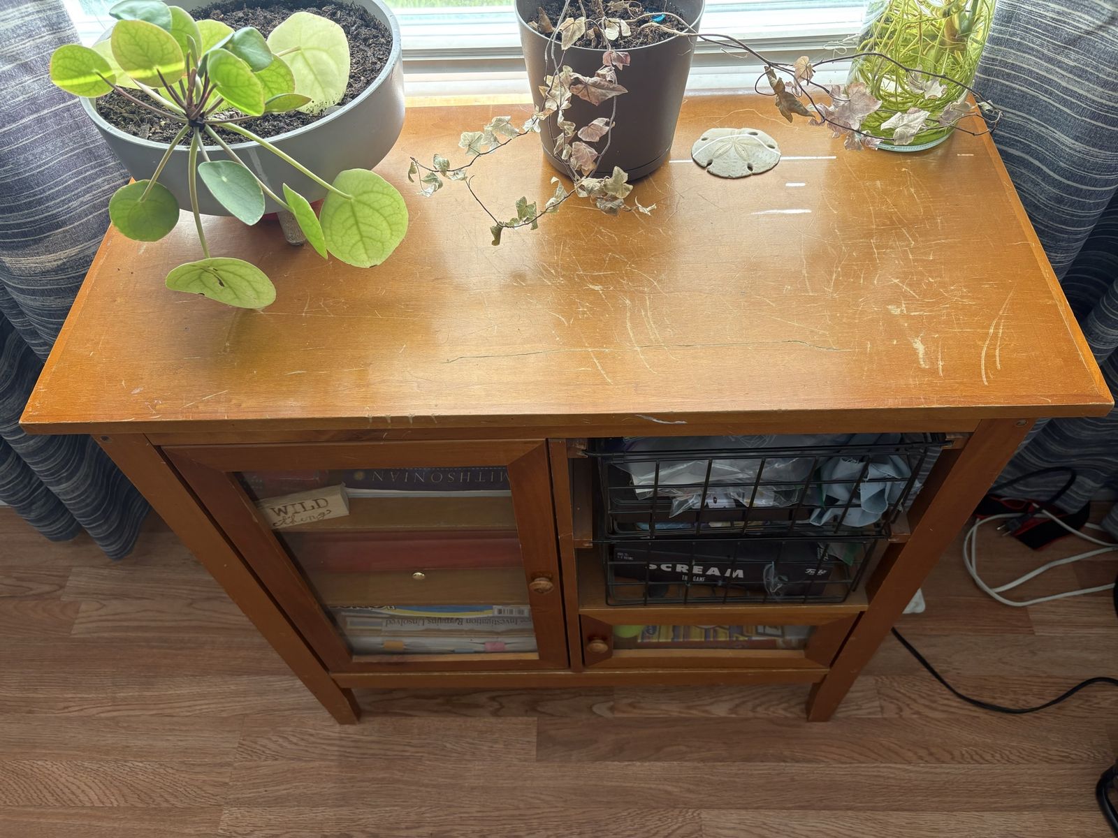 CashApp31”x 31” curio, 2 wire baskets, glass doors