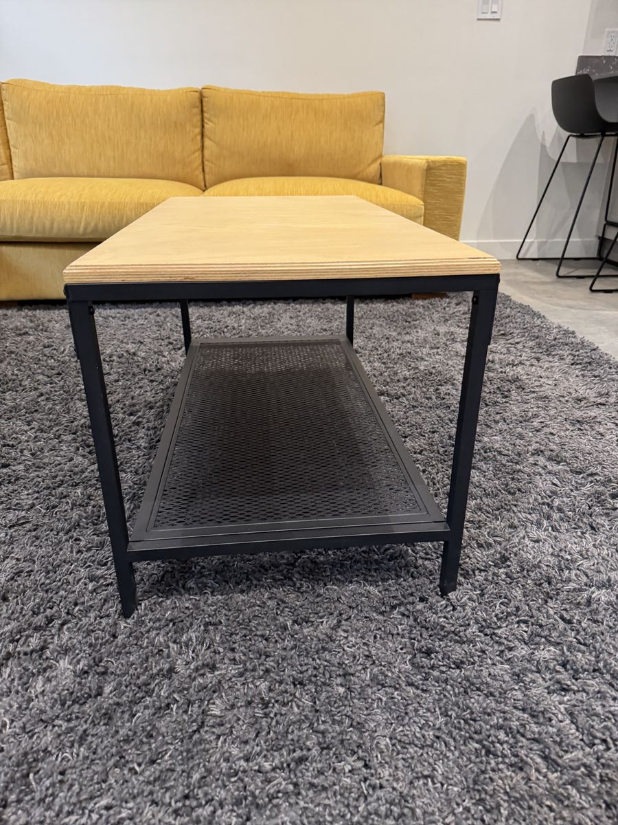 ZelleNice black metal frame with shelf, and natural laminate wood top. $45