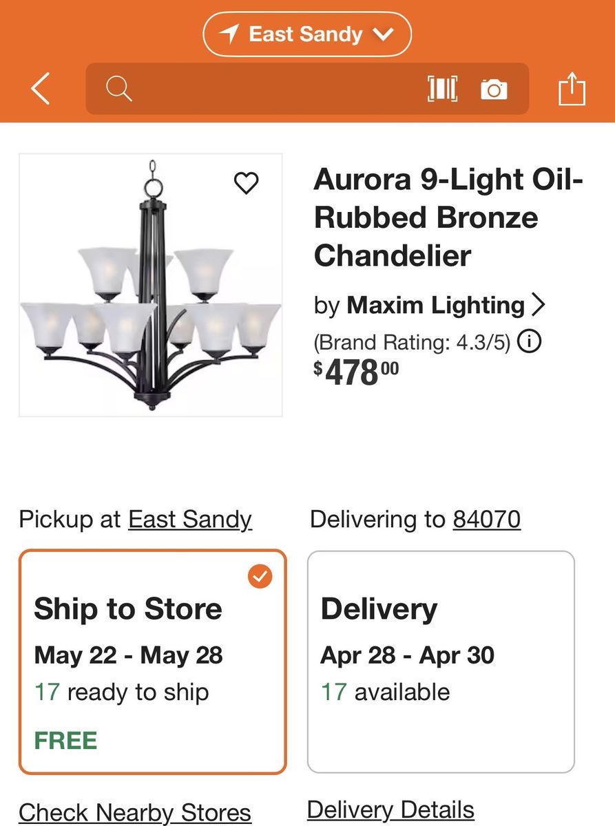 Up for sale is a Maxim Lighting Aurora 9-light two-tier chandelier in oil-rubbed bronze finish with frosted glass bell shades. This is a classic, traditional-style fixture that works beautifully in a dining room, foyer, or entryway. Retails new at Home Depot for $478. Features: • 9 lights across two tiers • Oil-rubbed bronze finish • Frosted glass bell shades • Chain-mount with adjustable height • Takes standard candelabra base bulbs (not included) Condition: Used / previously installed. Fixture is in good working condition. Please review all photos before purchasing. Shipping: Due to size and fragility, local pickup is strongly preferred. Please message with any questions before buying.