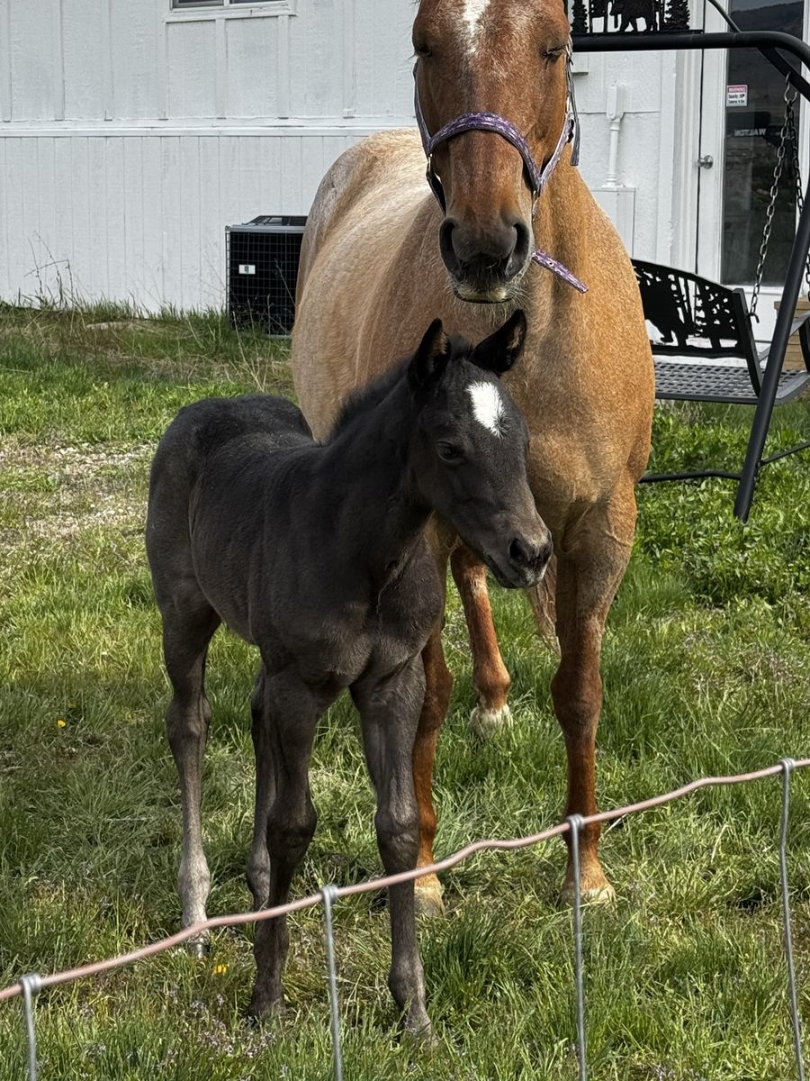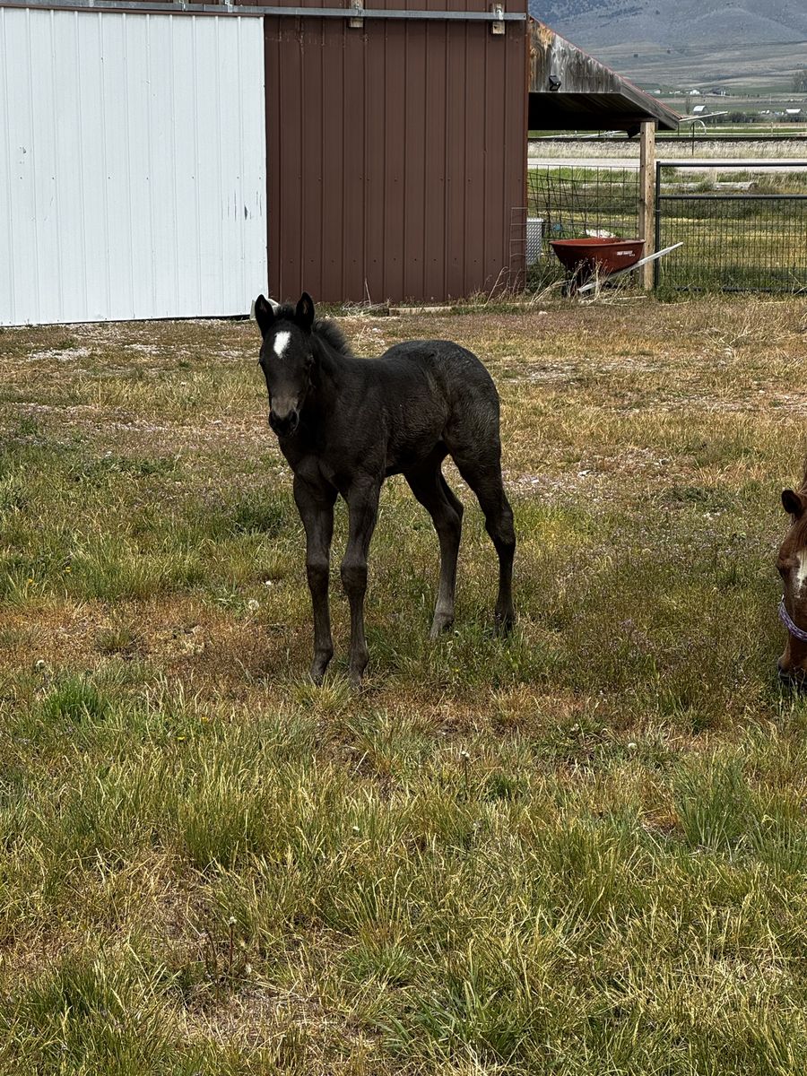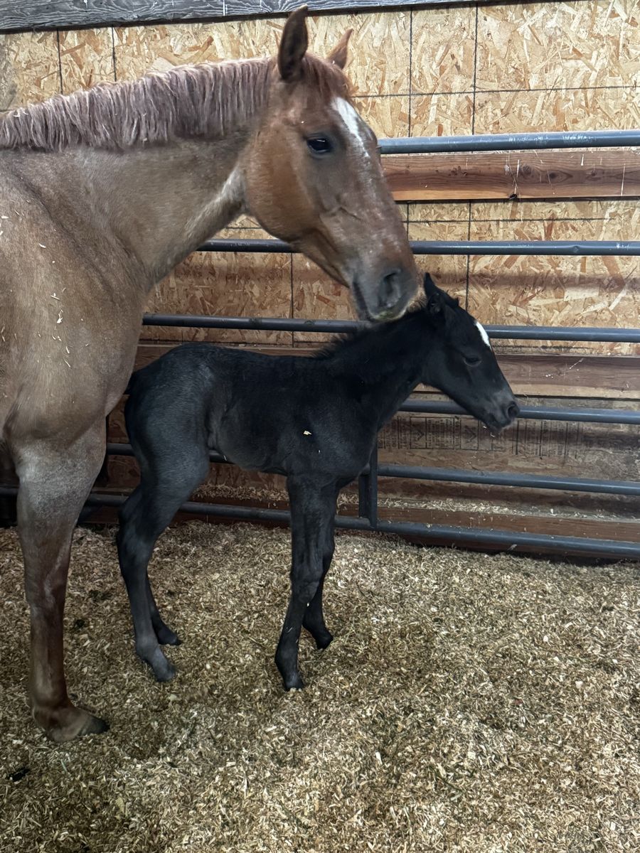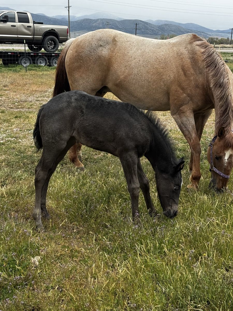 PayPalComing weanling blue roan filly for sale. Born 4/4/2026 to Frosted Flamingo SPR x Once You Go Hick. Dam is AQHA registered from money earners including Poco Bueno, Poco Pine, and Doc O’Lena to name a few. Sire is a money earner with NRCHA earning and team roping earning on both ends. His bloodlines include the greats like Doc Bar, Hydrive Cat, and Freckles Playboy only to name a few. Half of the parental siblings are excelling in the cowhorse arena and winning ribbons in halter, lunge line, and horsemanship. This little girl has so much potential and can go in any direction.