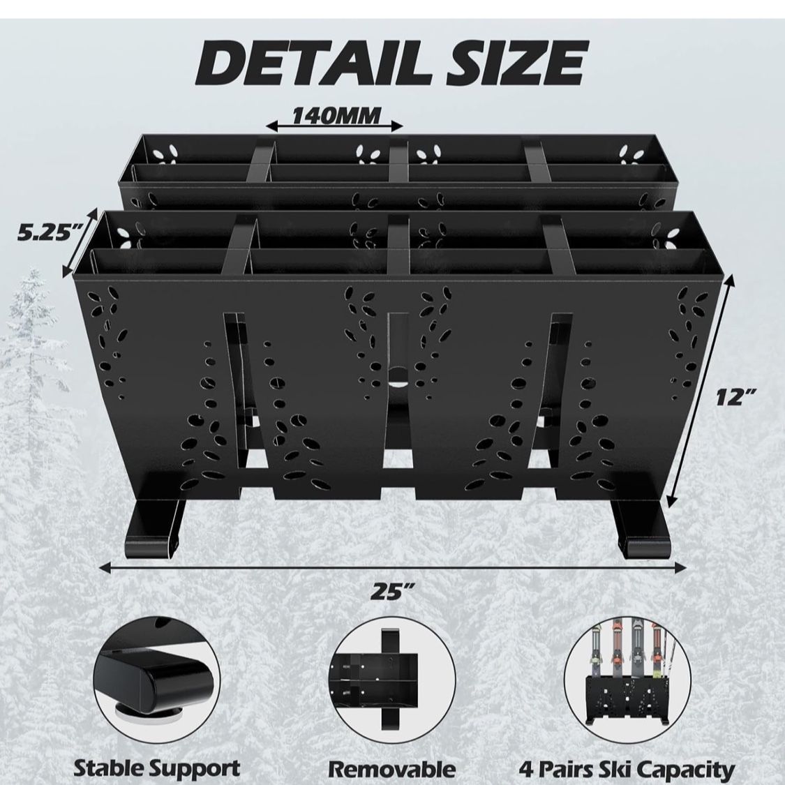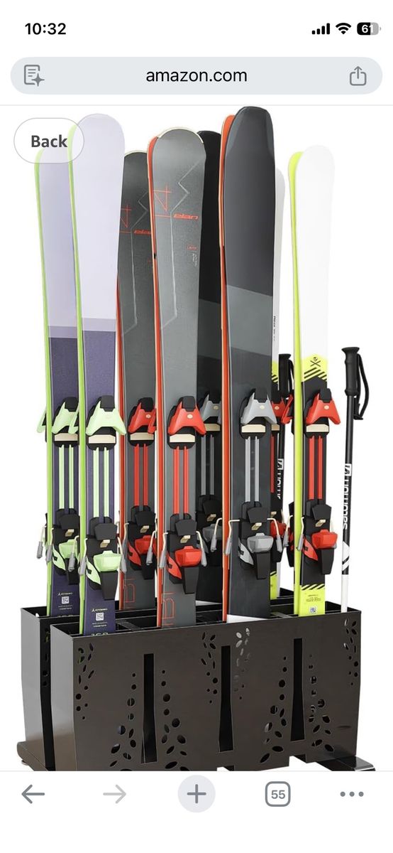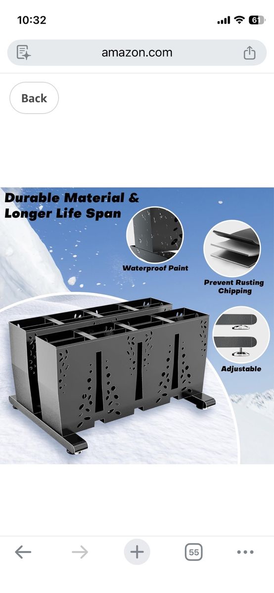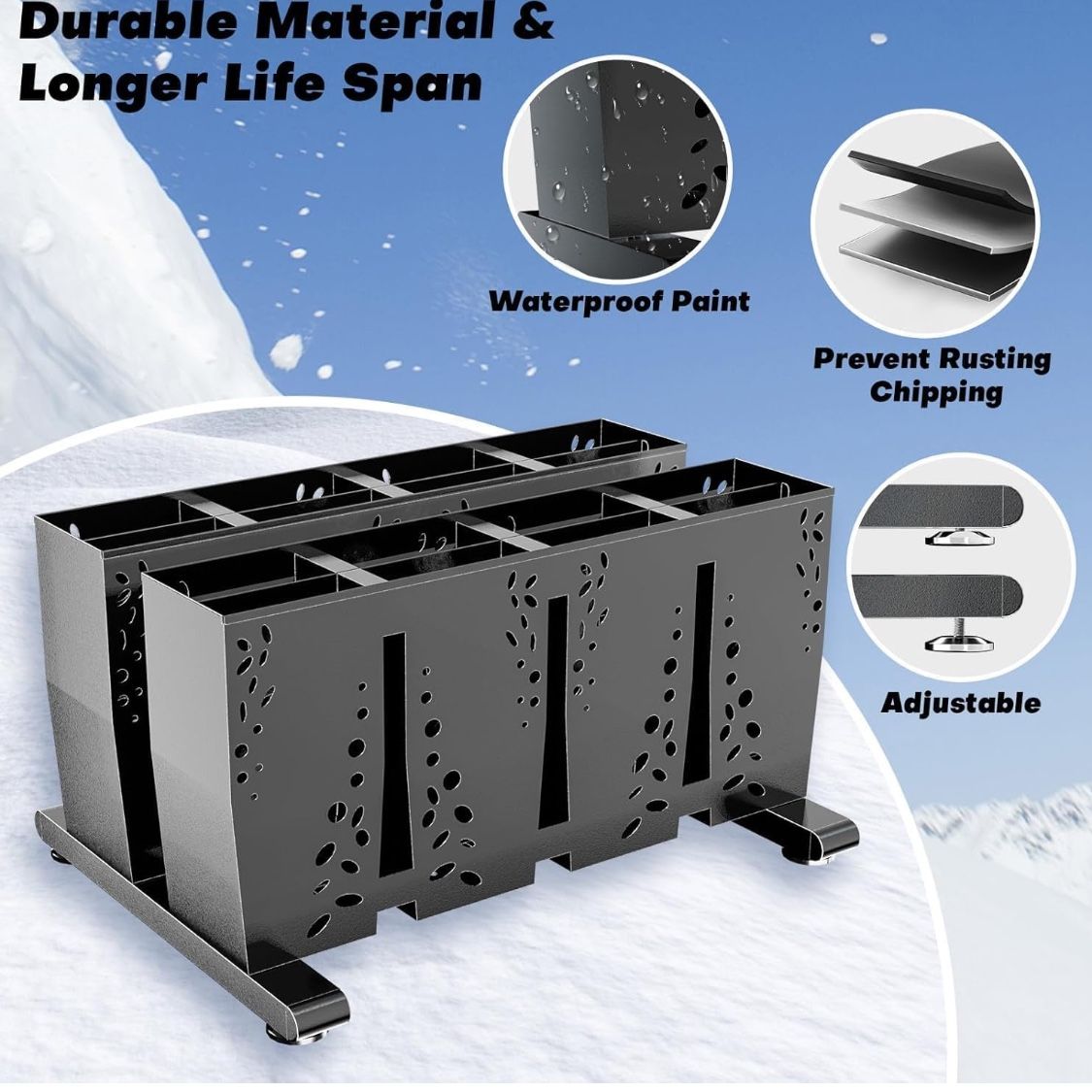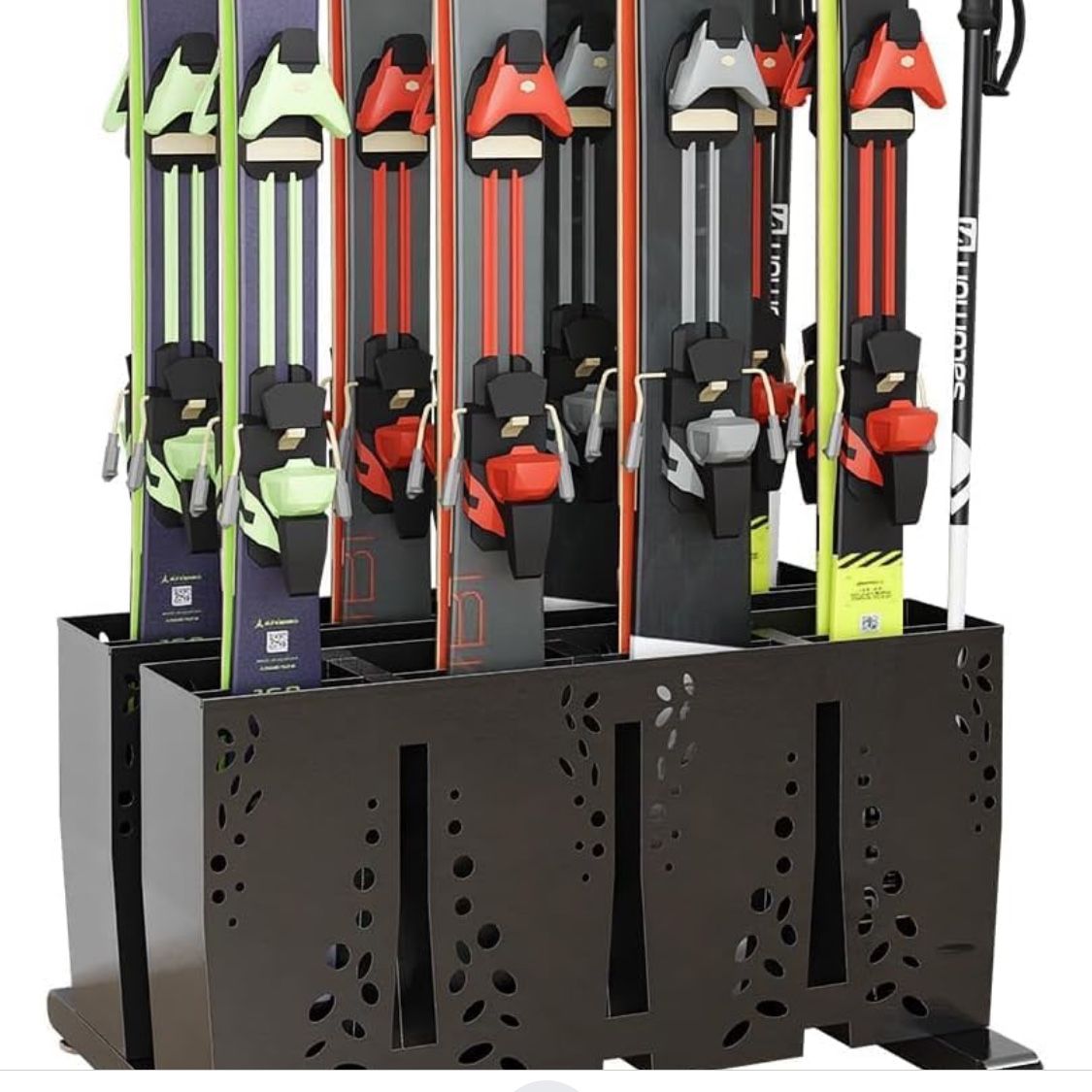 ApplePaySorry this year was a bust. Store your gear safely until next year. Heavy Duty Steel Construction – This freestanding ski and snowboard storage rack is built from high-quality steel, offering superior strength and durability compared to plastic stands, ensuring long-term use for your gear. Holds 8 Pairs of Skis – Designed to securely store up to 8 pairs of skis, this ski storage rack is perfect for keeping your garage or home organized and free of clutter. Freestanding and Stable Design – With its sturdy, freestanding structure, this snowboard and ski rack remains stable even when fully loaded, providing a safe and reliable way to store your winter gear. Ideal for Snowboard and Ski Enthusiasts – Whether for your garage, home, or ski lodge, this versatile rack offers a convenient storage solution for ski and snowboard lovers, keeping your equipment safe and ready for the next adventure. Space-Saving Organizer – This compact floor stand fits easily into tight spaces, making it an ideal ski and snowboard storage solution for garages, basements, or entryways.