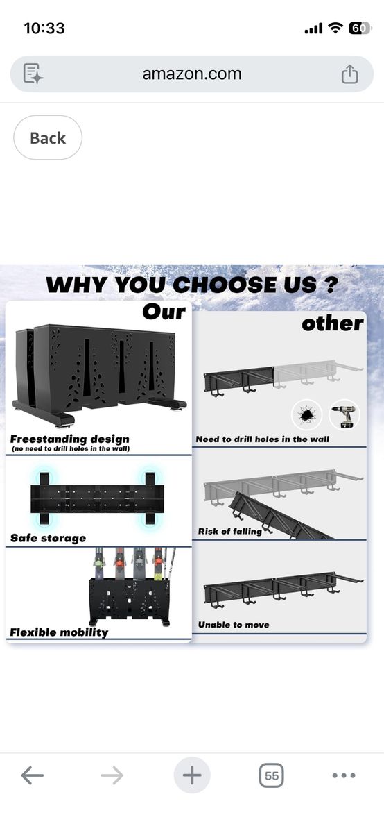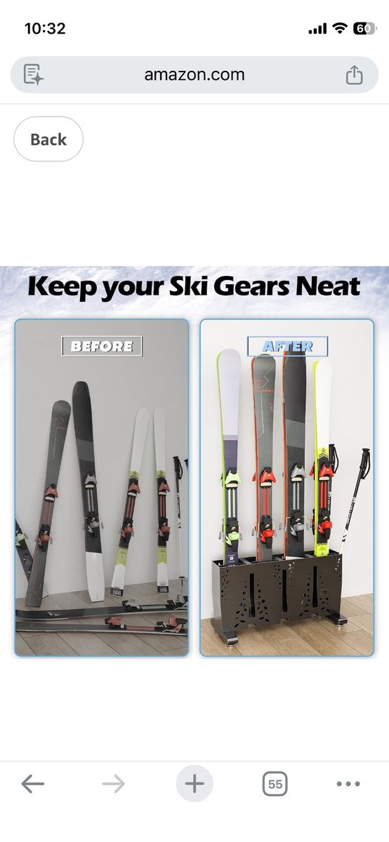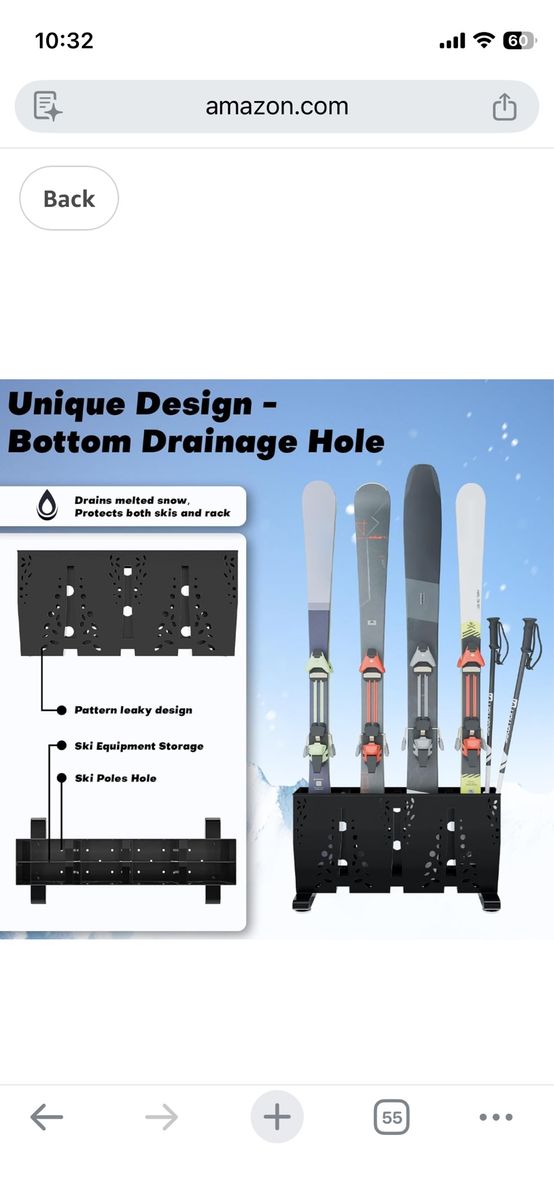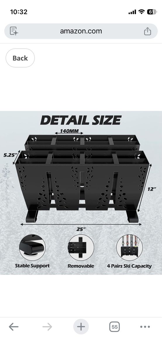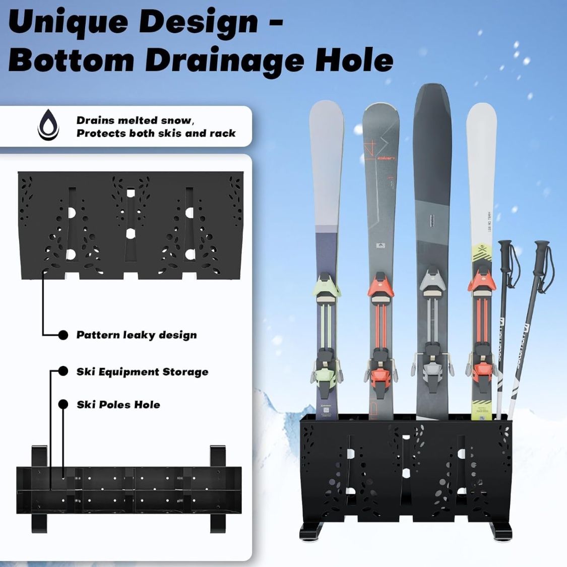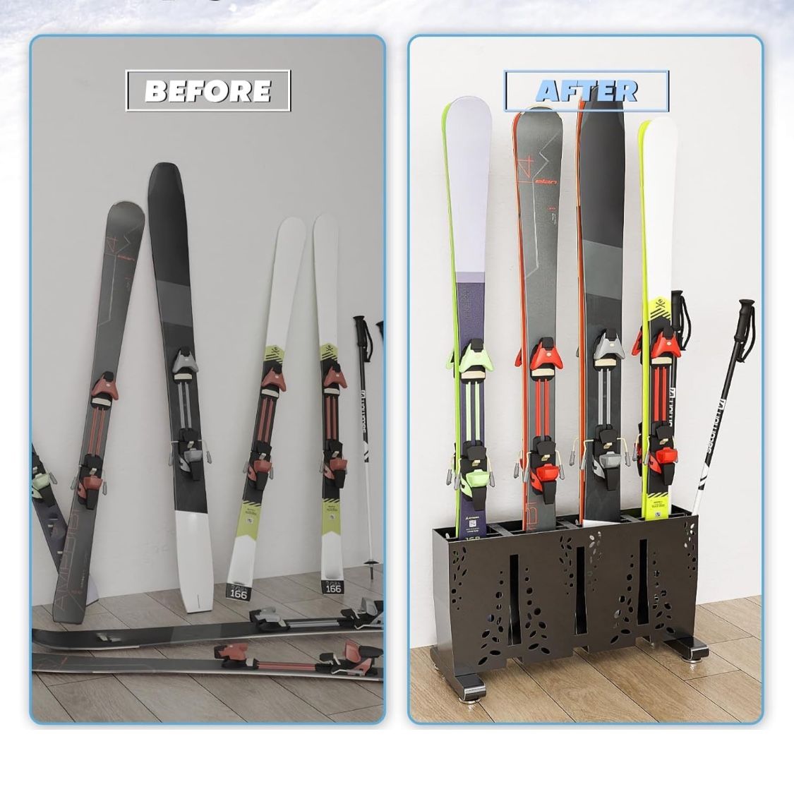 ApplePaySorry this year was a bust. Store your gear safely until next year. Heavy Duty Steel Construction – This freestanding ski and snowboard storage rack is built from high-quality steel, offering superior strength and durability compared to plastic stands, ensuring long-term use for your gear. Holds 8 Pairs of Skis – Designed to securely store up to 8 pairs of skis, this ski storage rack is perfect for keeping your garage or home organized and free of clutter. Freestanding and Stable Design – With its sturdy, freestanding structure, this snowboard and ski rack remains stable even when fully loaded, providing a safe and reliable way to store your winter gear. Ideal for Snowboard and Ski Enthusiasts – Whether for your garage, home, or ski lodge, this versatile rack offers a convenient storage solution for ski and snowboard lovers, keeping your equipment safe and ready for the next adventure. Space-Saving Organizer – This compact floor stand fits easily into tight spaces, making it an ideal ski and snowboard storage solution for garages, basements, or entryways.