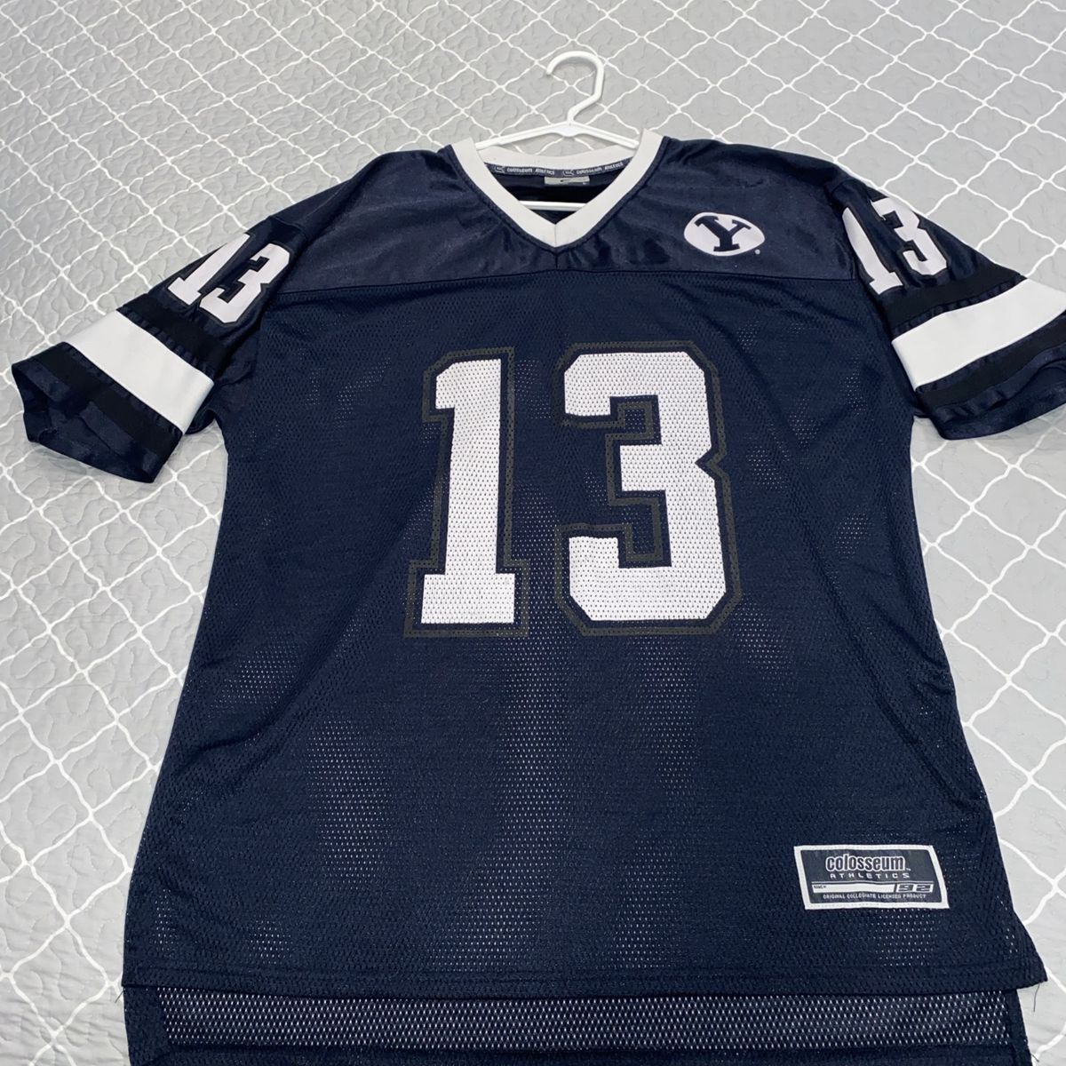 VenmoA brand new BYU football jersey made for the super cougar fan. Colosseum athletics brand. This jersey is beautiful navy blue with white. Numbers on the front and back and the sleeves shoulders. No flaws whatsoever. Comes from a smoke free pet free home. Cash or Venmo only please. I live in Mapleton and can meet you at the location for a Safe transaction. Thank you for looking