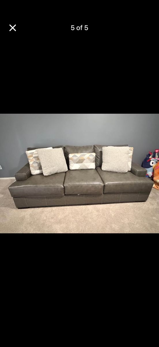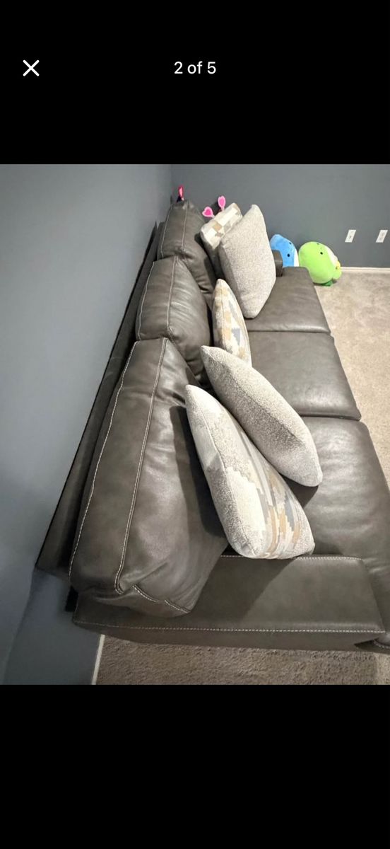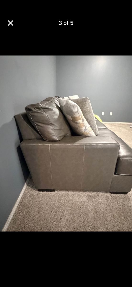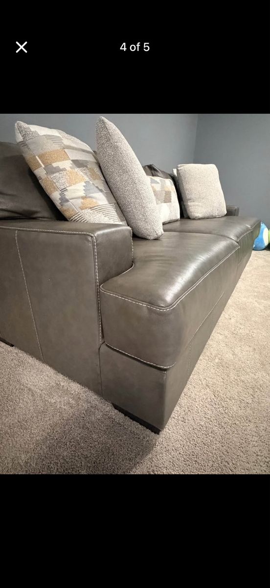Selling our modern gray sofa in great condition. It’s been lightly used for about a year and has been well taken care of in a smoke-free home. We do have huskies, but they are not allowed on the couch.