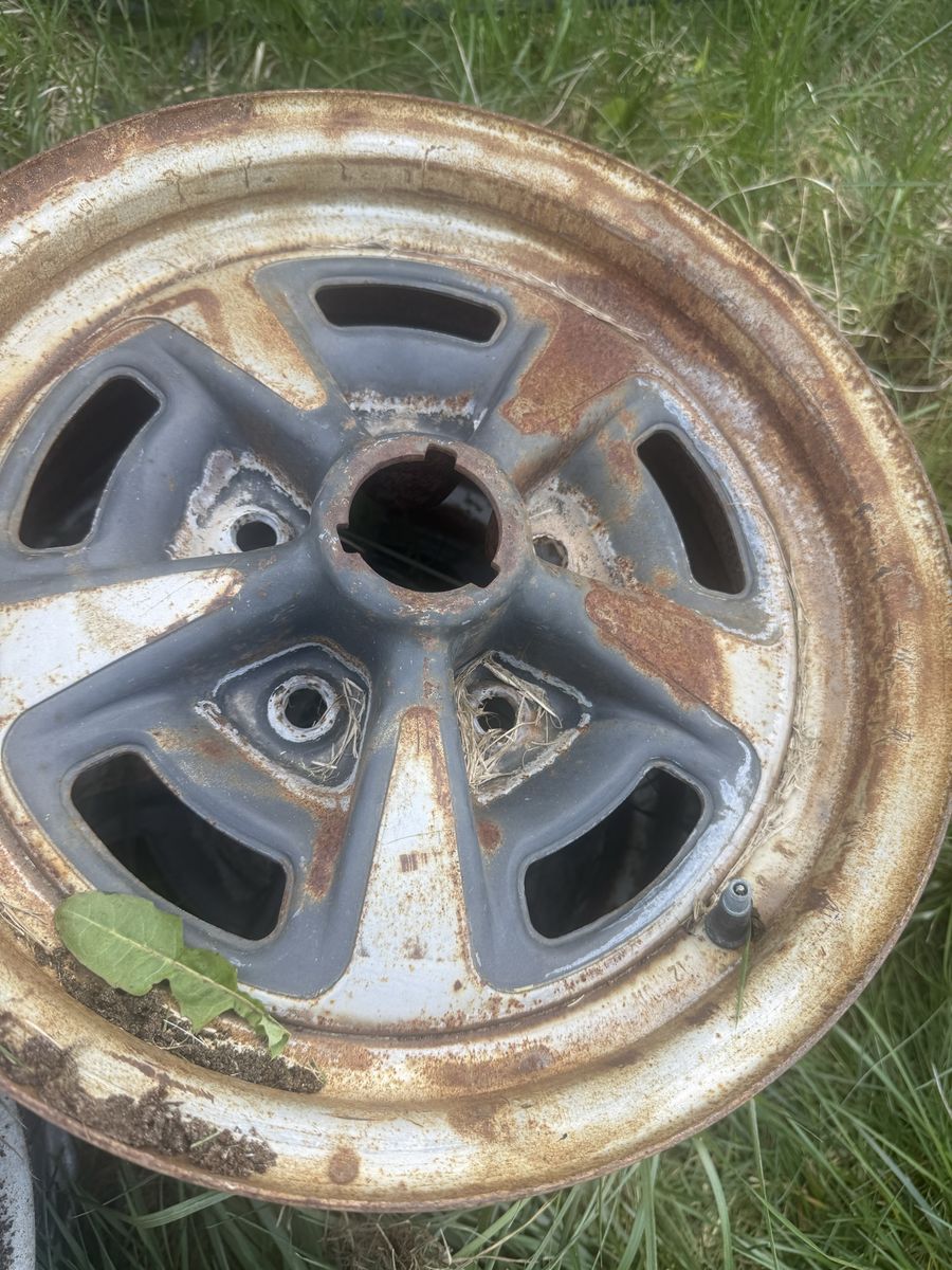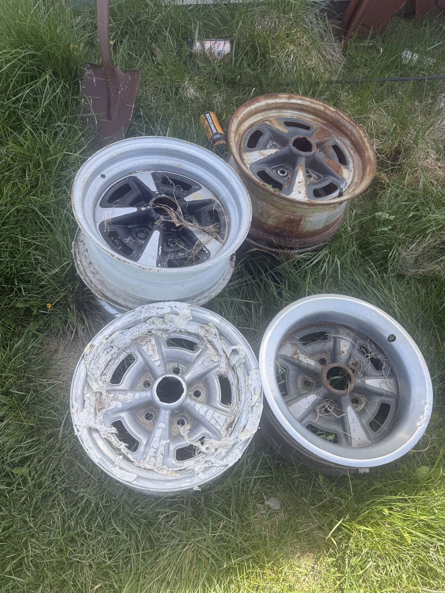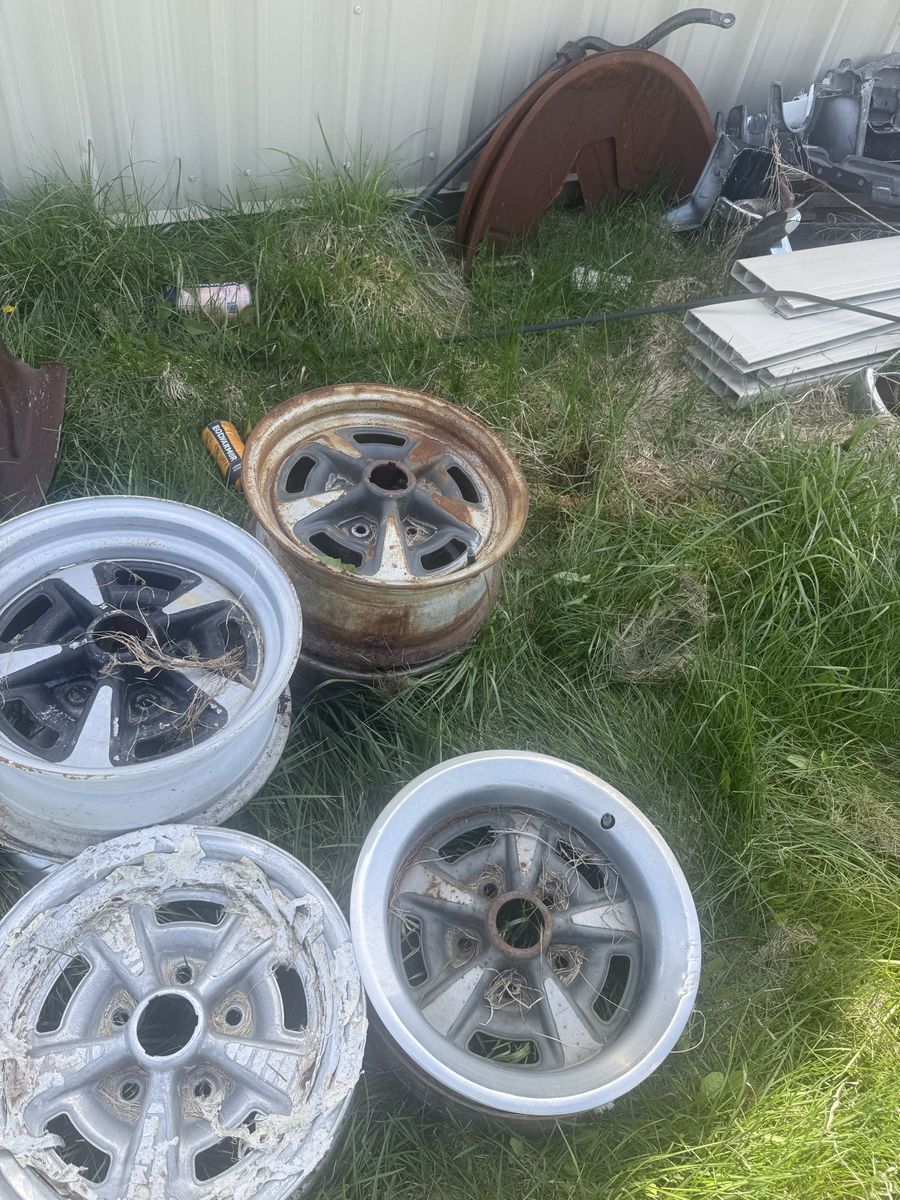 6.5 wide two of them. 7 inch wide 4 of them All 15 inch and not bent have 5 Crome rings and no center caps call 801 698 0872 40 each or 200 for all 7 I found another one