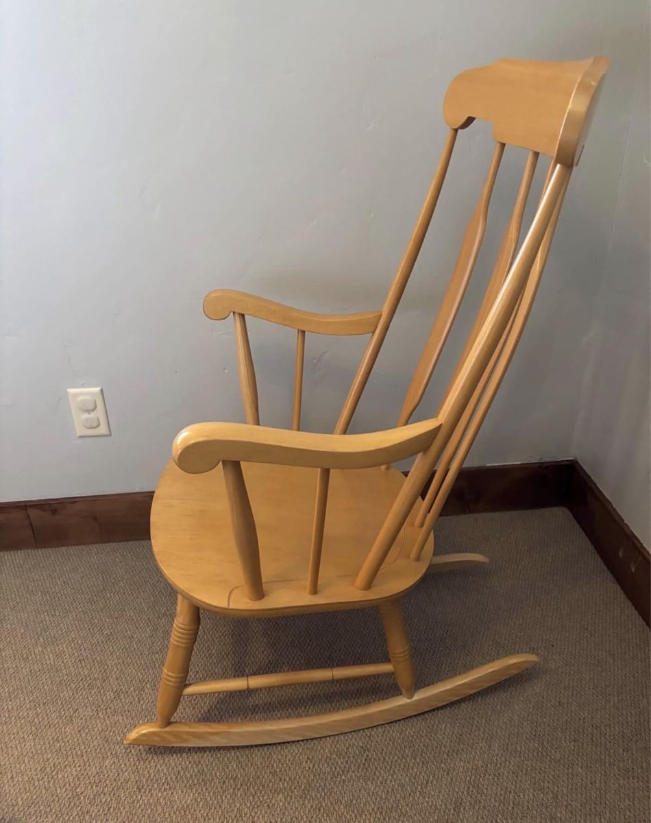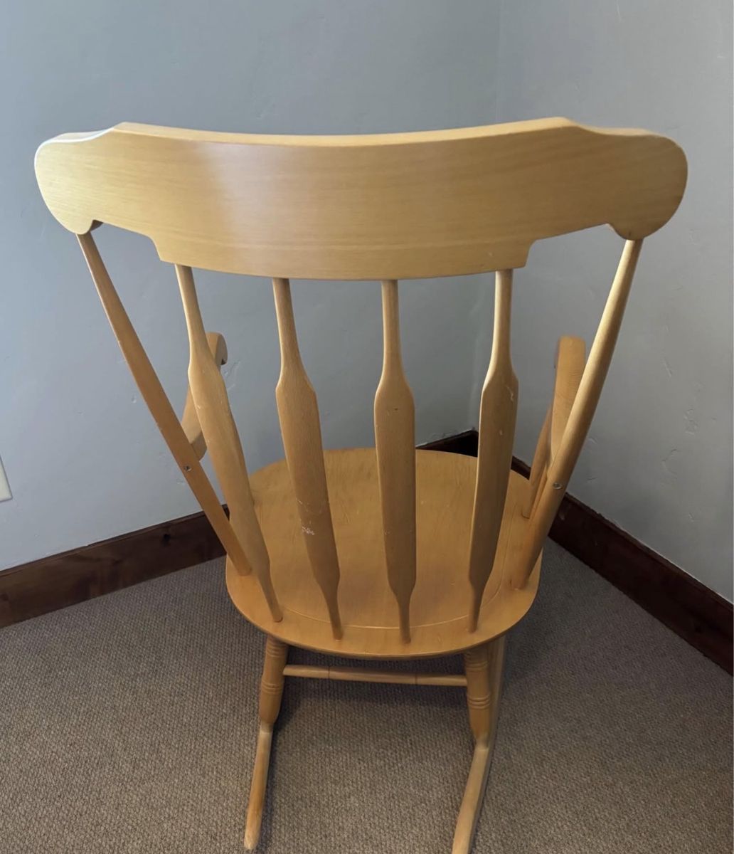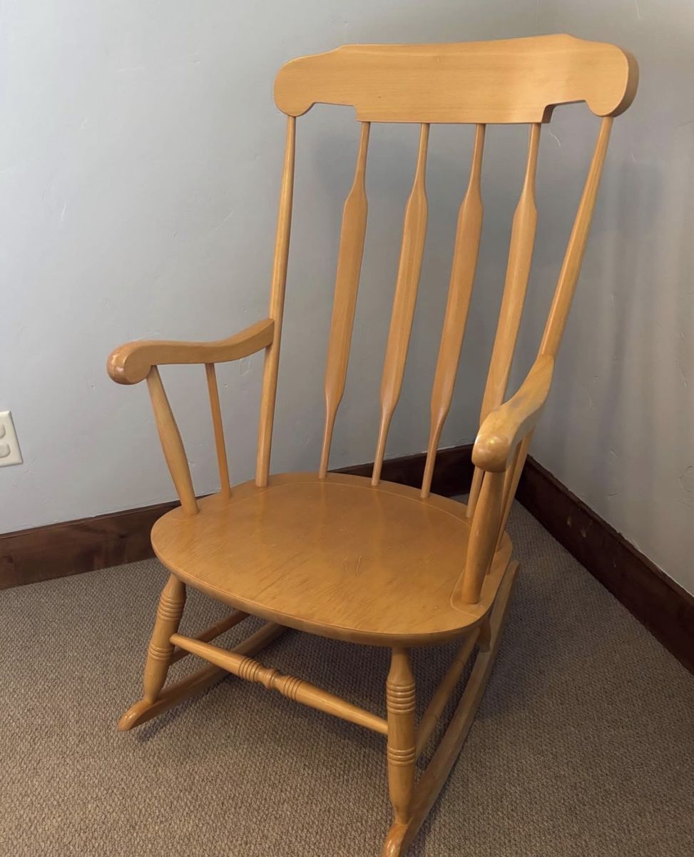 VenmoSturdy Wooden Rocking Chair. The seat and back are nice and wide. Charming chair from England in very good condition. Would like to keep but no longer have a space for it. Could be sprayed with all weather paint for use on a porch. Pick up in Park City. Cash or Venmo