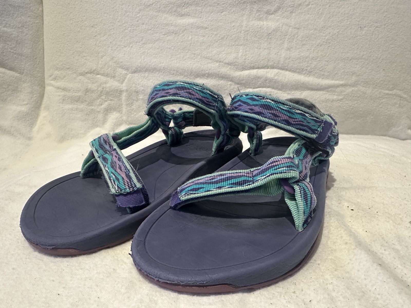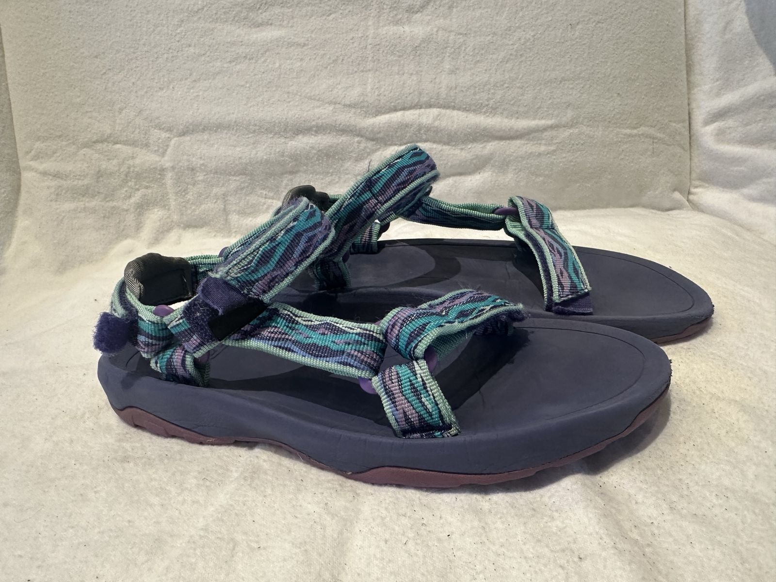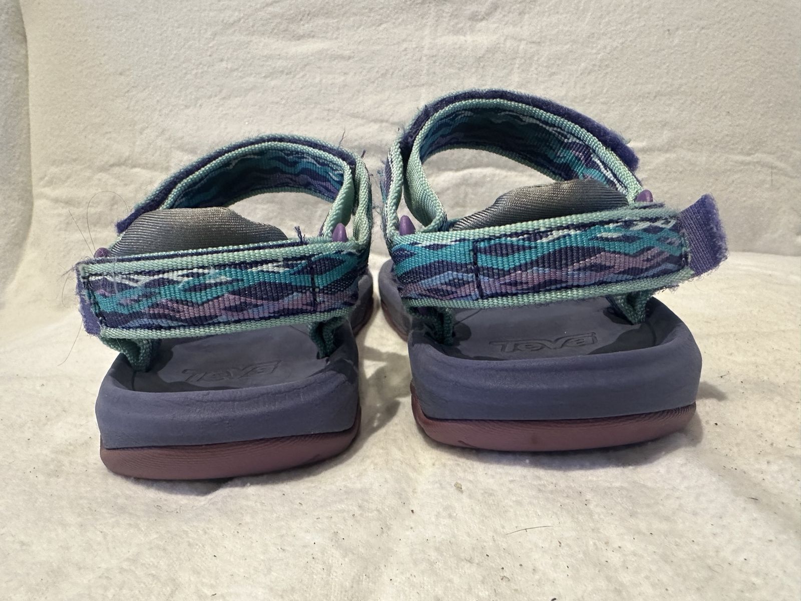 Teva youth size 3, purple and blue wave pattern, sports sandals. These are in good condition. See photos for details. I take cash or venmo but cash is preferred. Check out my other ads for additional sizes and styles. text is best. 801-201-4446.