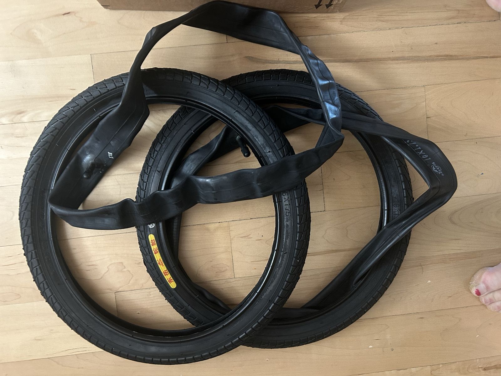 VenmoTwo brand new 16 inch bike tires and tube. Took them out of the box and packaging before realizing we don’t need them.