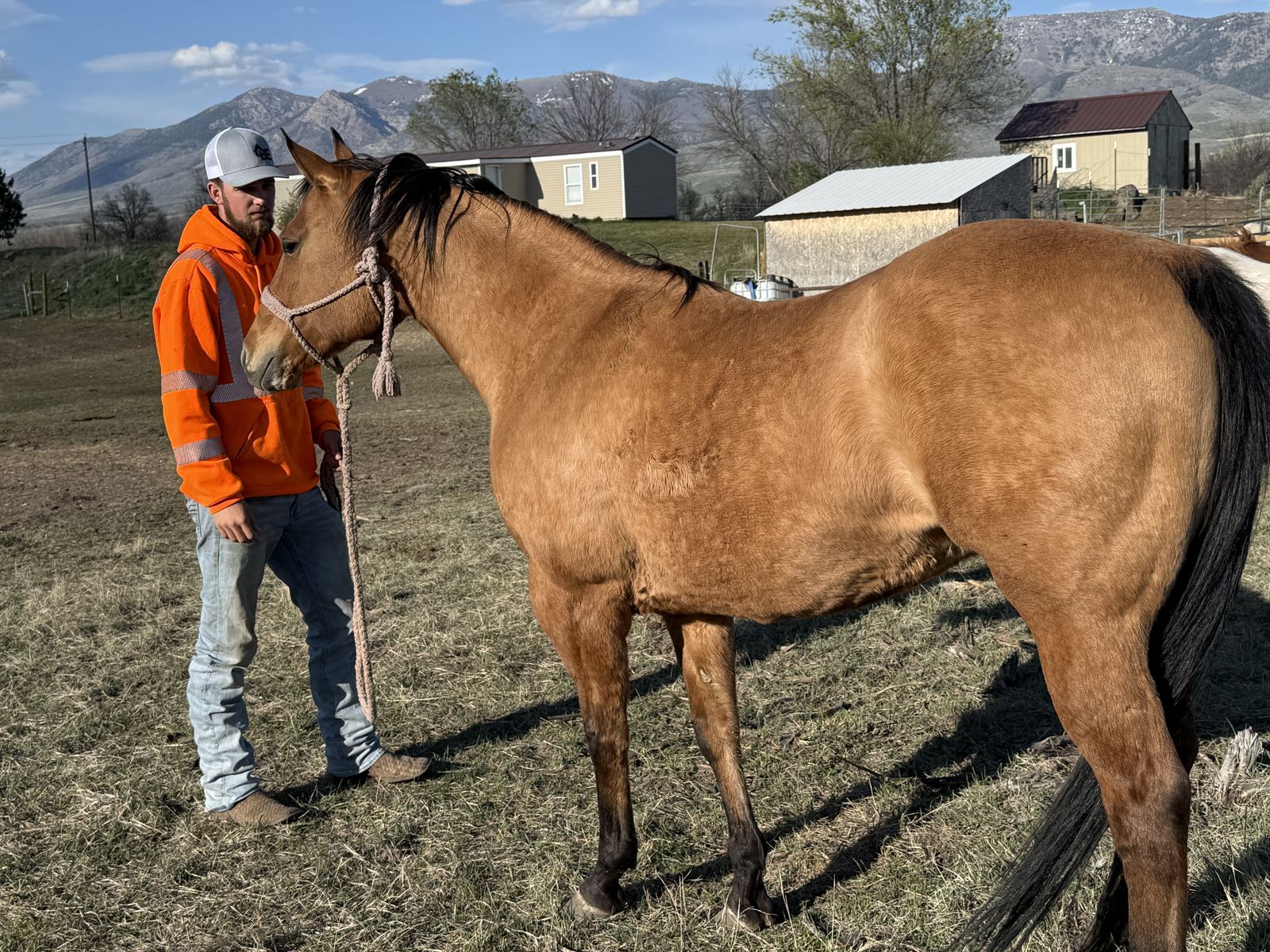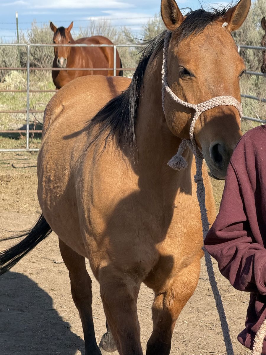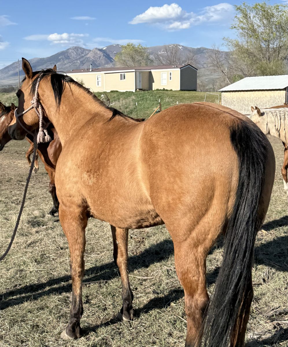 Grade mare, has been saddled many times. Never offered to buck, ties, loads, trims, never had shoes on. She will be started once we get into better weather, but offering her before hand.
