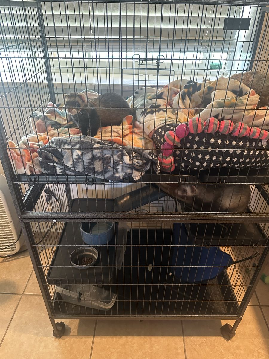 VenmoI have two ferrets that are healthy have all their shots. They’re both around one and a half years old comes with the cage, blankets toys, food potty pads. they are potty trained with potty pads. They are both females and you have to buy them as a pair. And nice with kids.