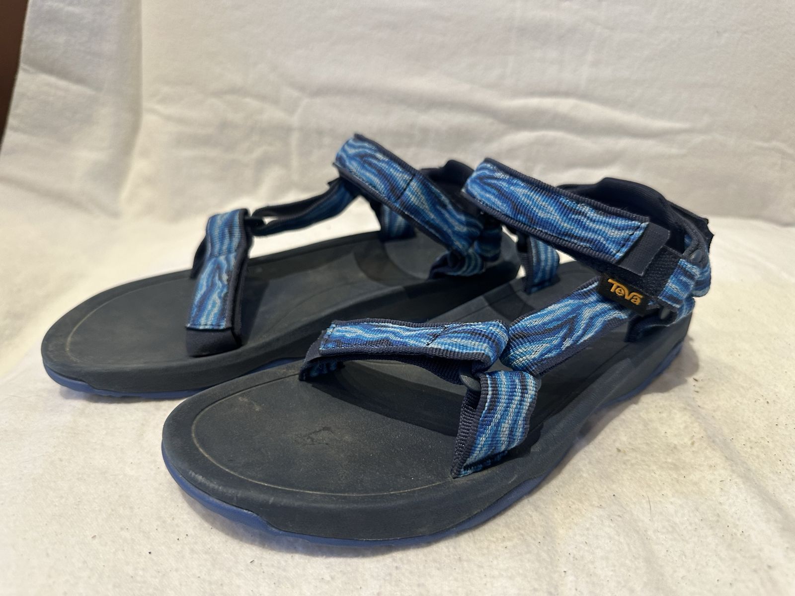 Teva youth size 6 blue wave print sports sandals. These are in good condition, see photos for details. I take cash or Venmo, but cash is preferred. Text is best. 801-201-4446. Check out my other ads for additional sizes and styles.